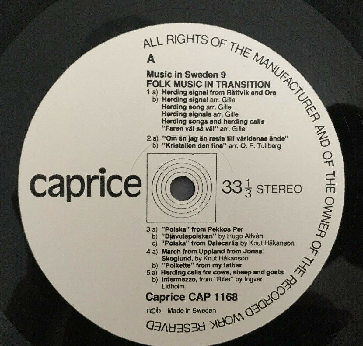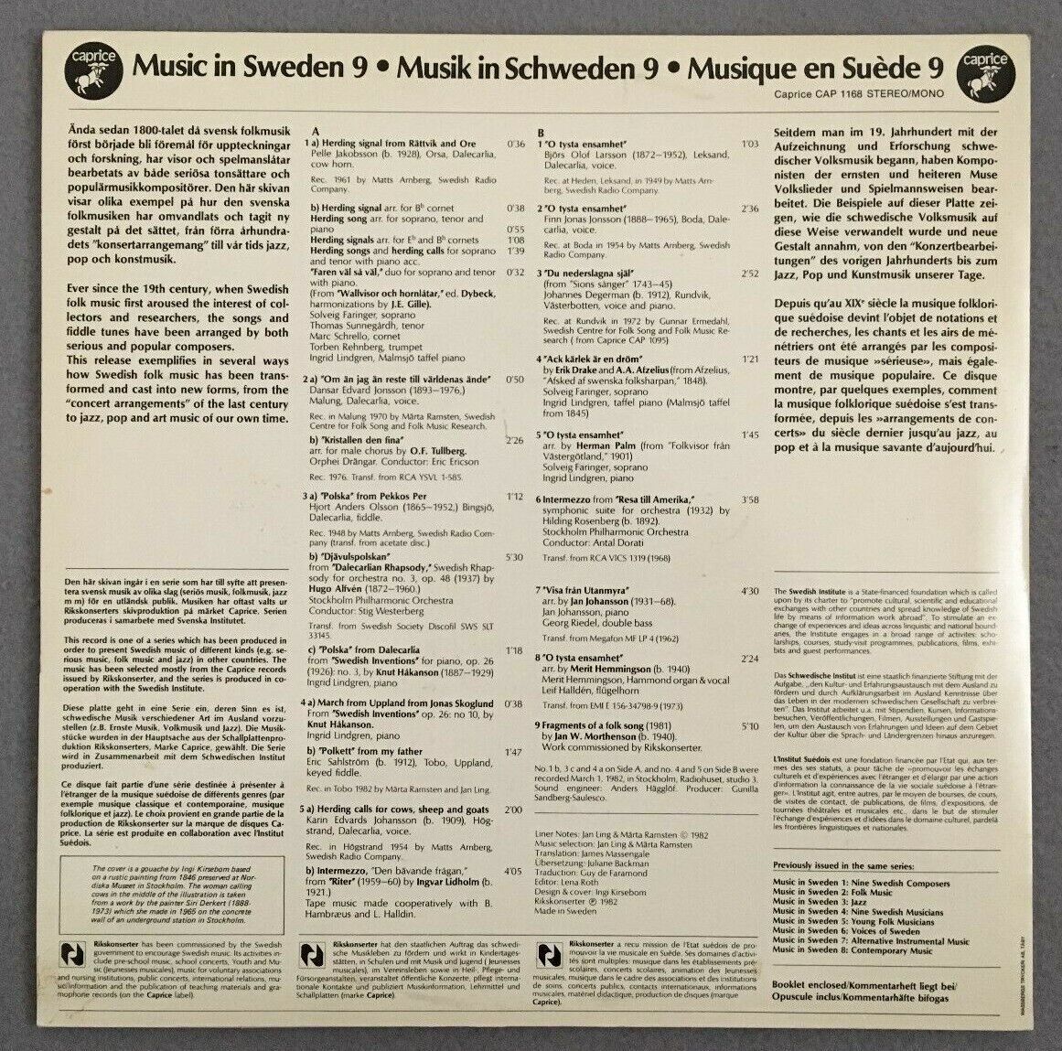 P182 Music in Sweden Folk Music In Transition Caprice CAP 1168 Stereo