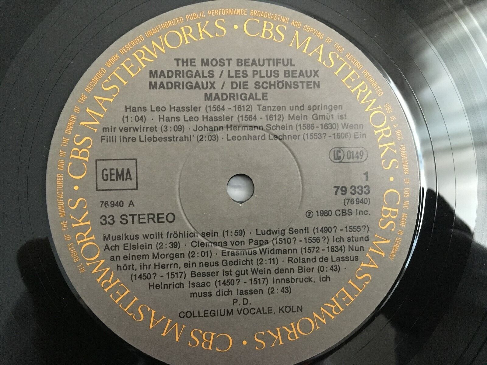 B689 The Most Beautiful Madrigals Collegium Vocale 3LP CBS Masterworks 79333 St