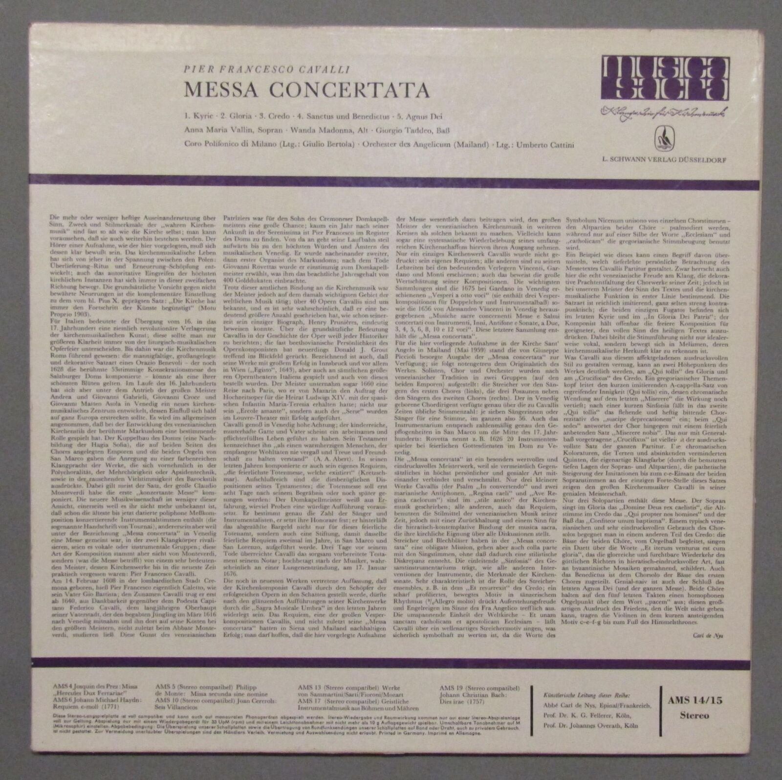 B644 Cavalli Mass Concerto Gloria Cattini 2LP Musica Sacra AMS 14/15 Stereo