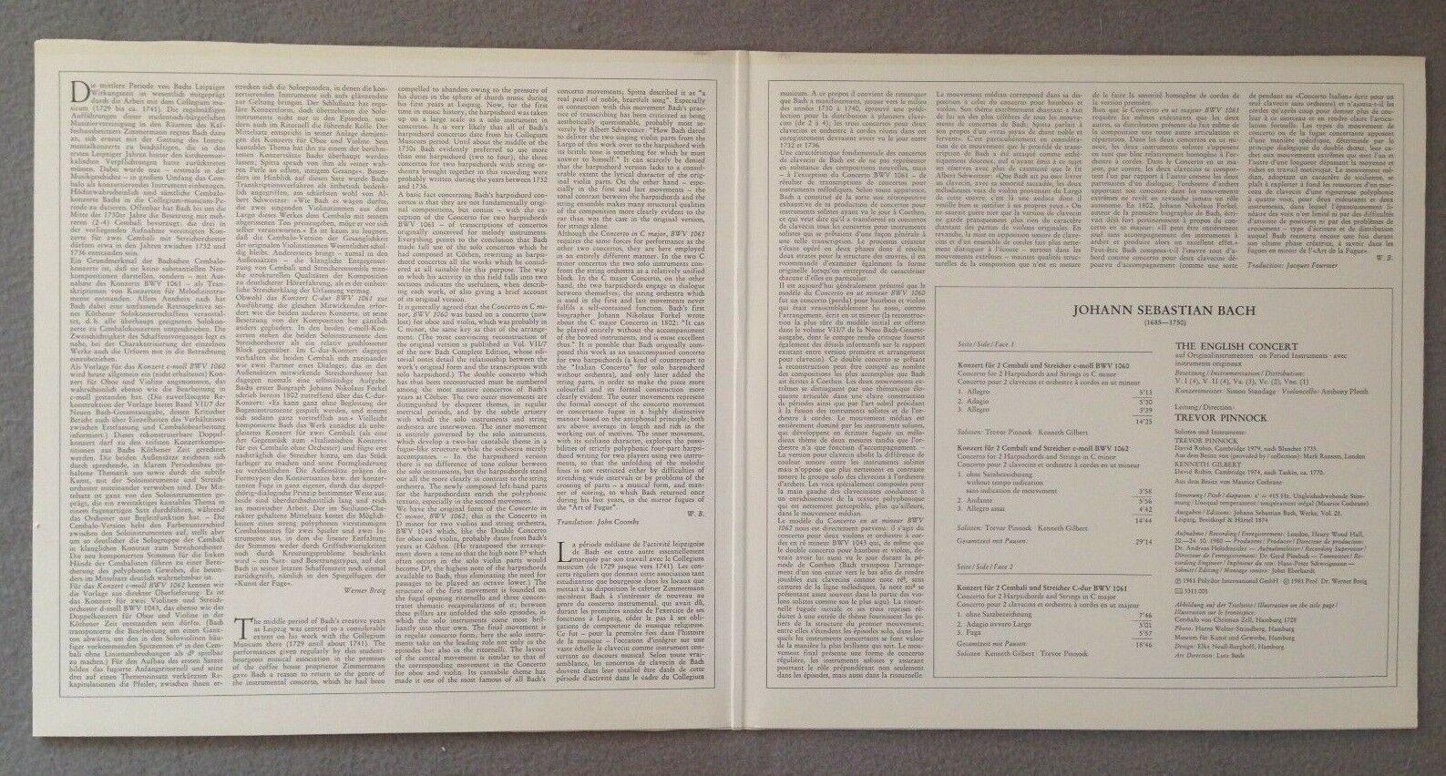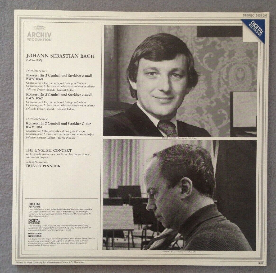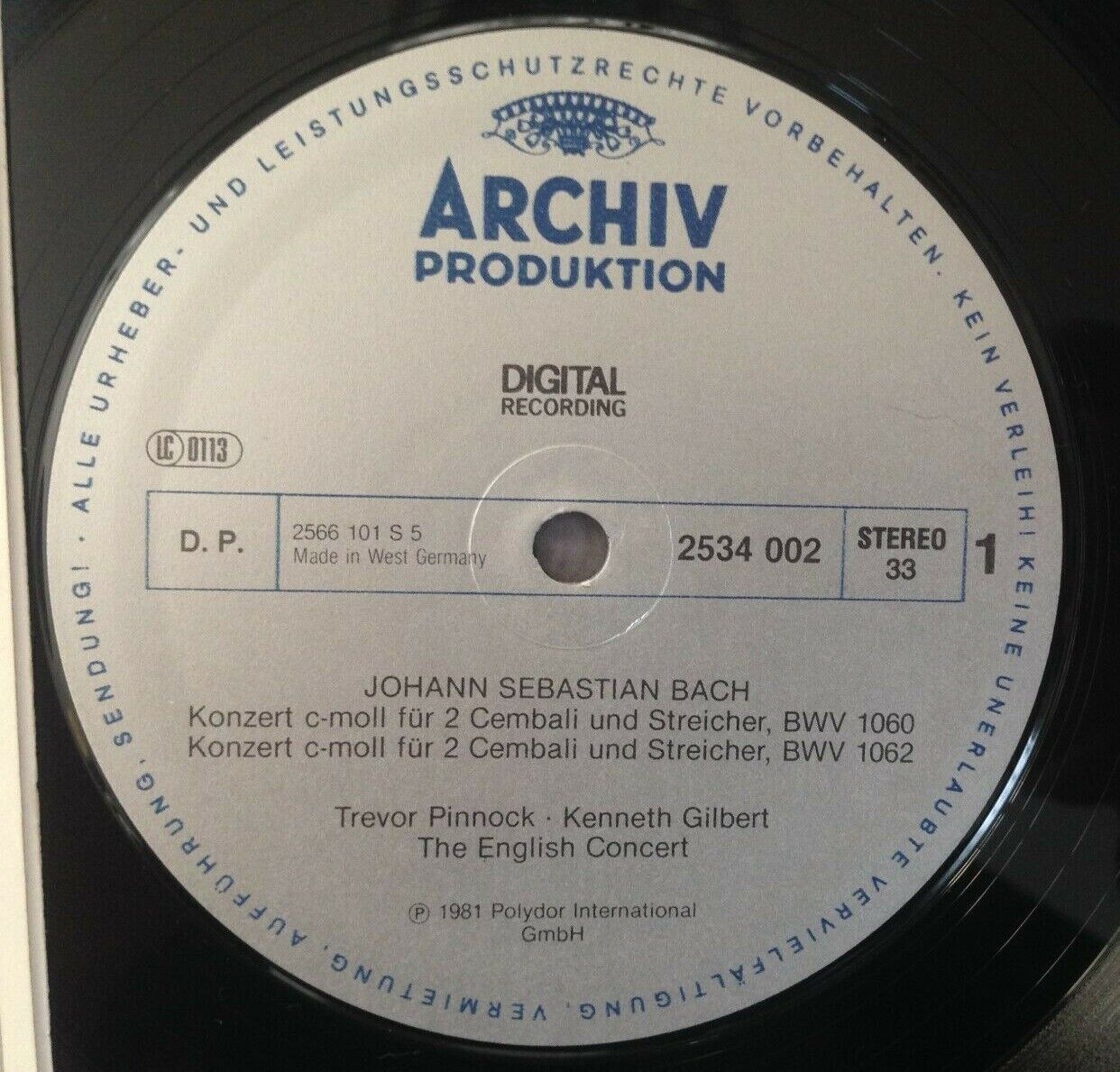 P304 Bach Concertos for Harpsichords Pinnock DGG Archiv 2534 002 Digital Stereo