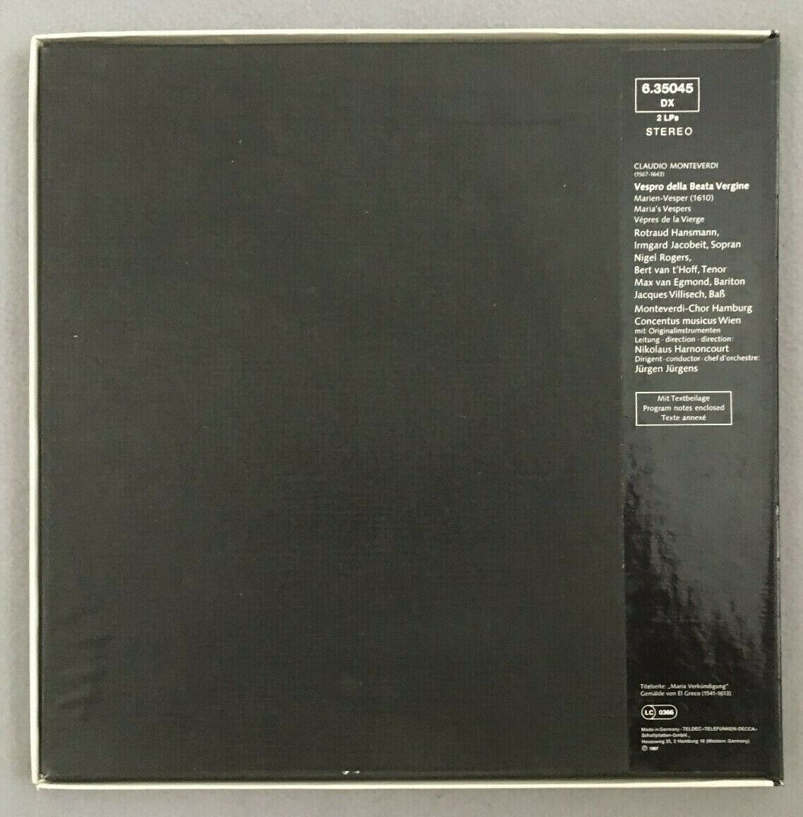 B722 Monteverdi Vespro della Beata Vergine Harnoncourt 2LP Telefunken 6.35045 DX
