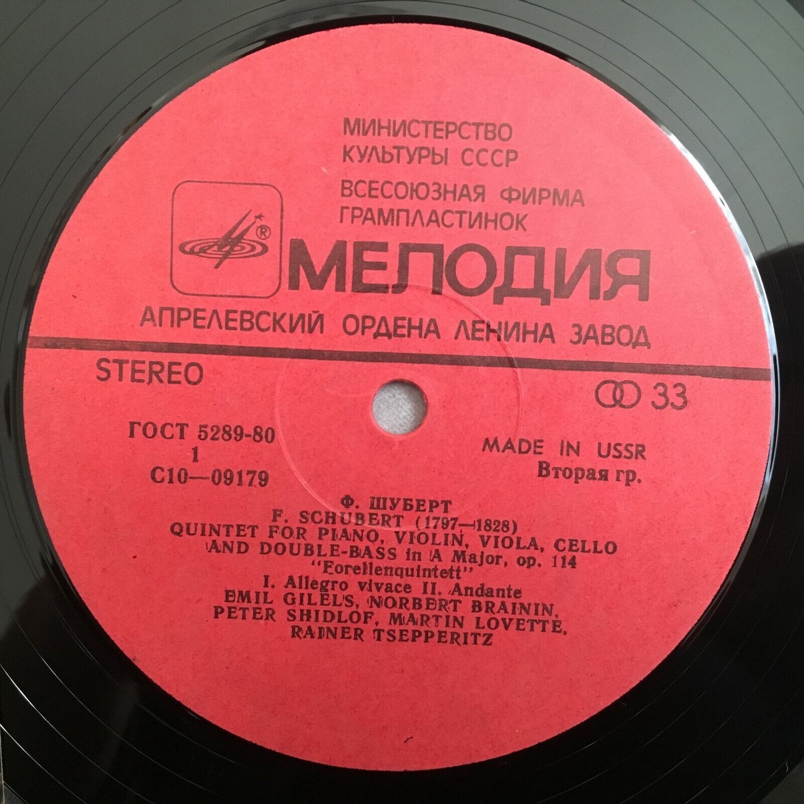 X315 Schubert Trout Quintet Gilels Brainin Lovett Melodiya C10 09179 009 Stereo