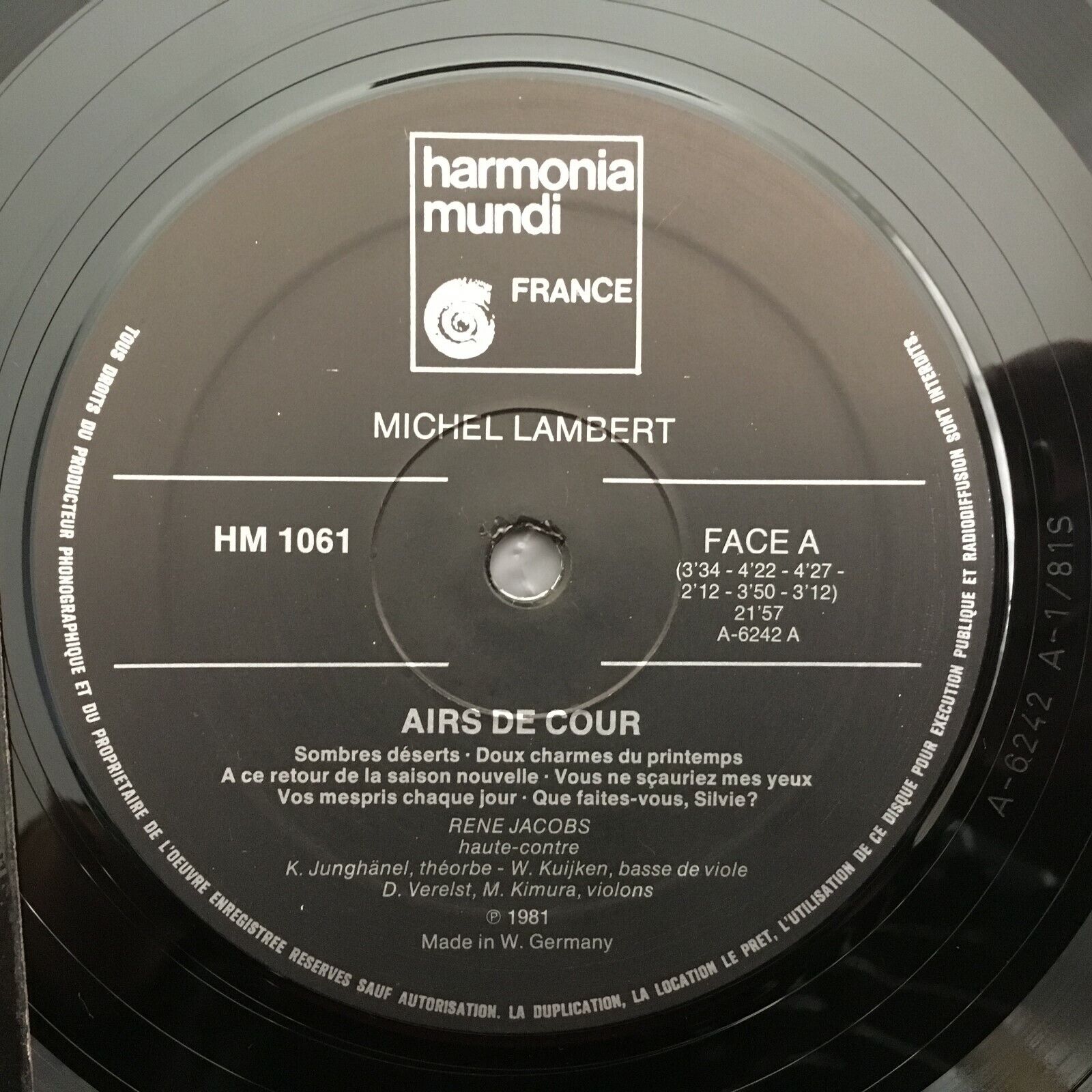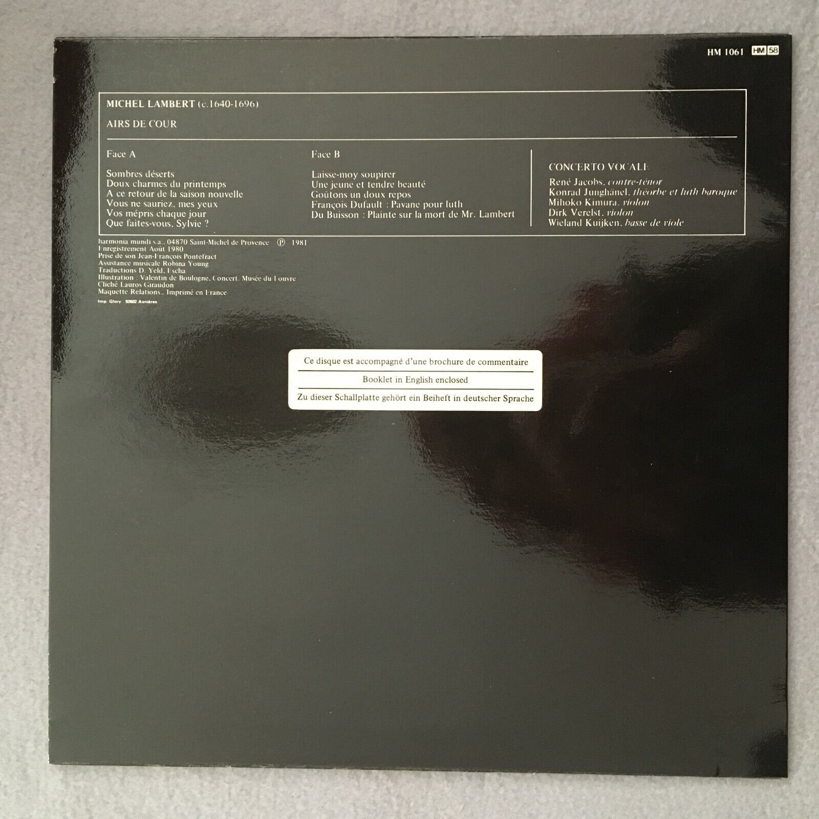 X363 Lambert Airs de Cour Jacobs Junghänel Kuijken HM France HM 1061 Stereo