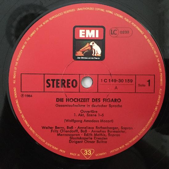 B783 Mozart Hochzeit des Figaro Schreier Suitner 3LP EMI 1C 149-30 159/61 Stereo