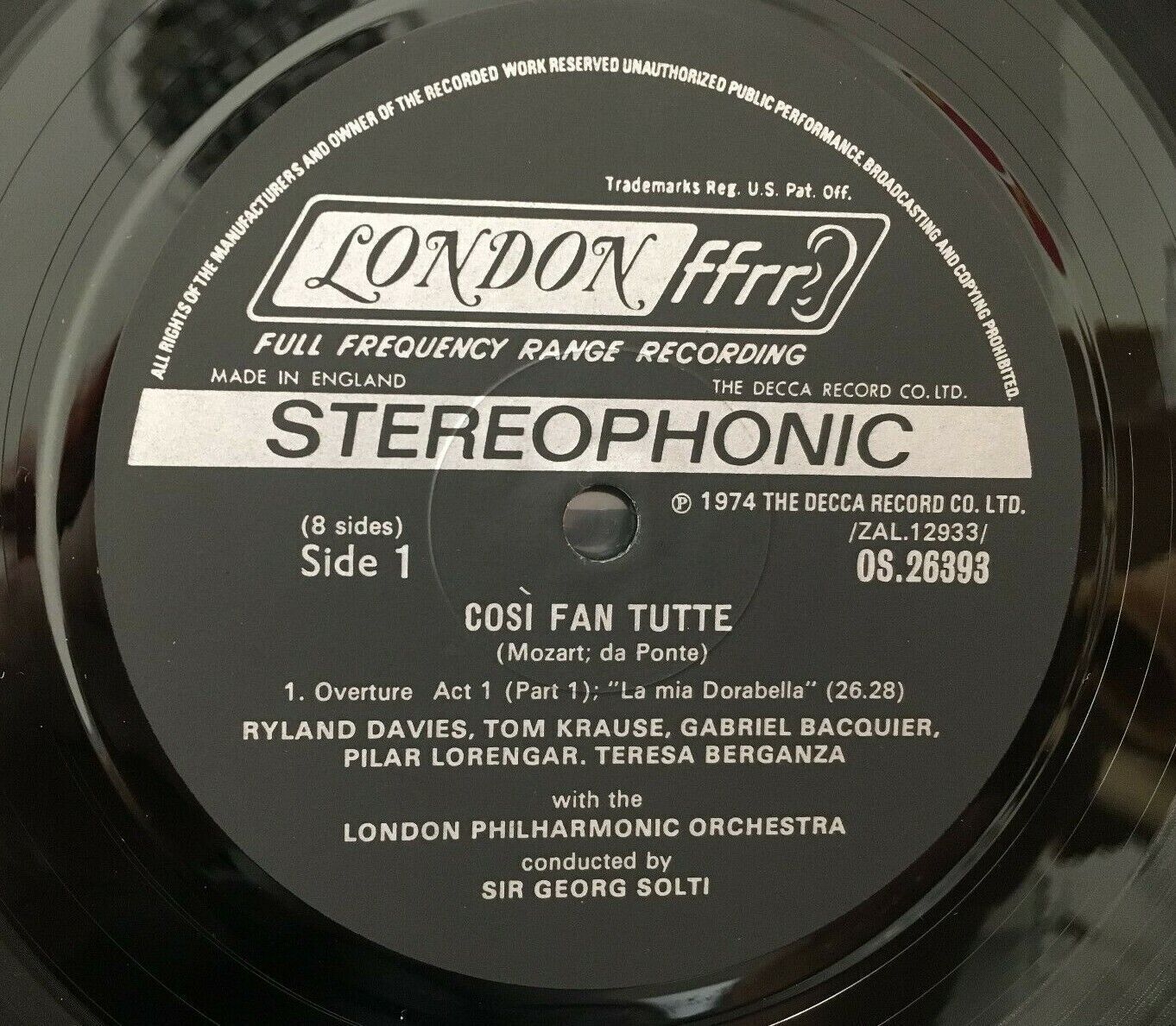 B794 Mozart Cosi Fan Tutte Lorengar Berganza Solti LPO 4LP London OSA 1442 Ste