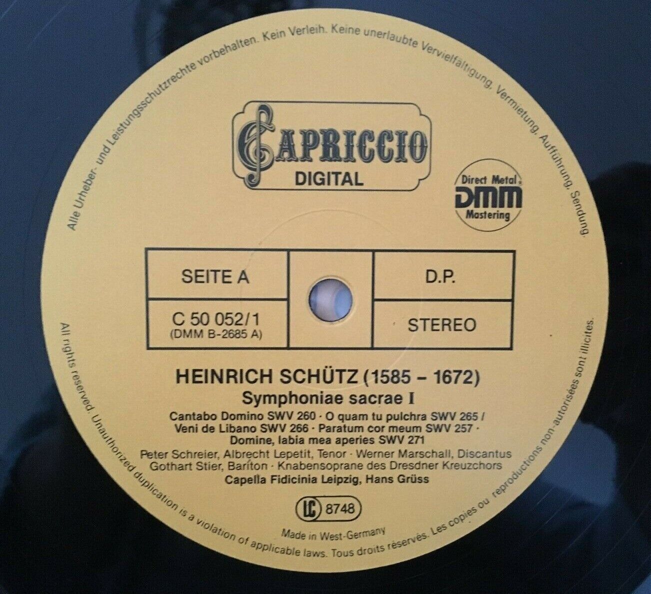 B816 Schütz Symphoniae Sacre Part I Schreier 2LP Capriccio C 50 052/1-2 Digital