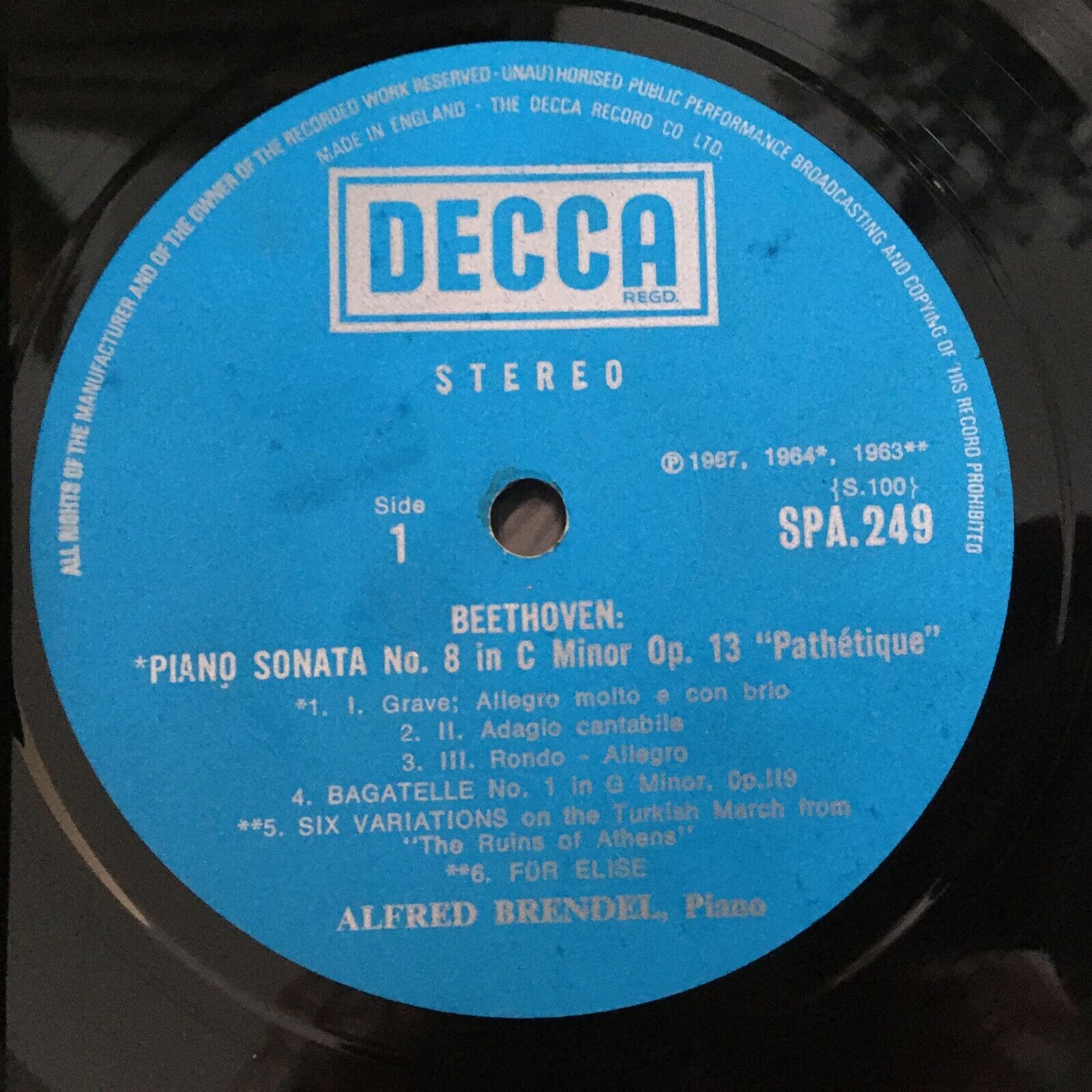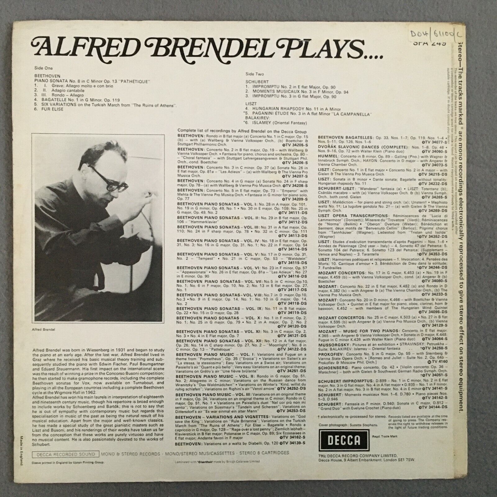 X478 Brendel plays Beethoven Sonata Schubert Impromptu DECCA SPA 249 Stereo