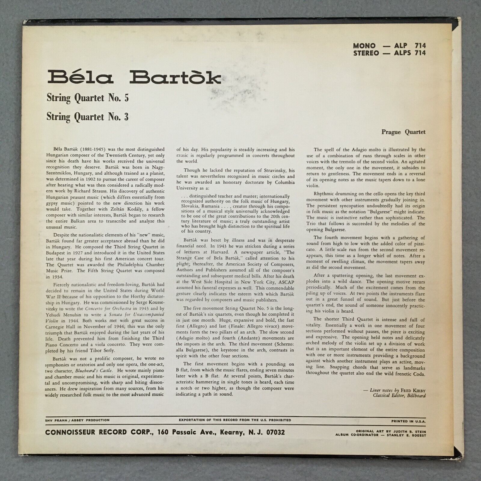 X565 Bartok String Quartets No.3,5 Prague Quartet Novotny Artia ALPS 714 Stereo