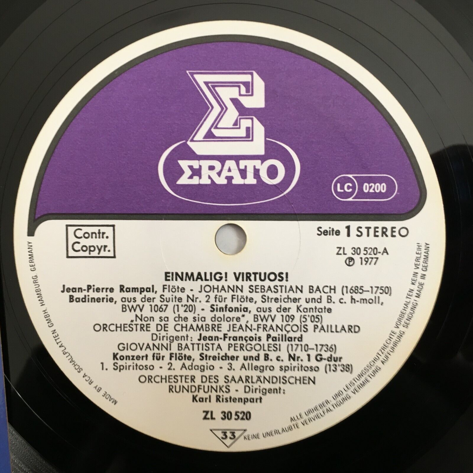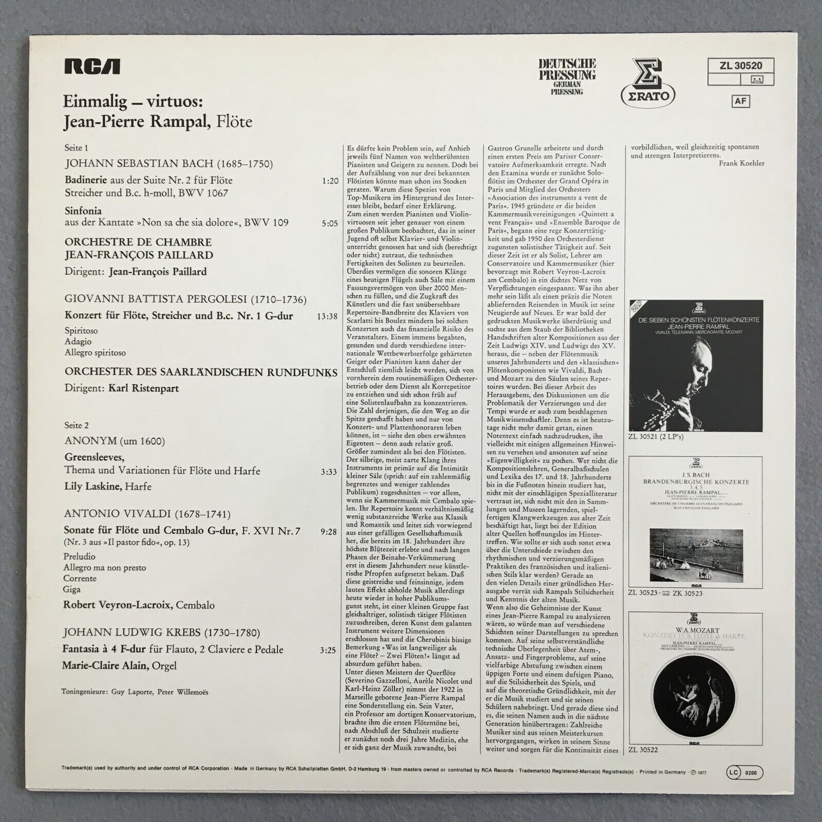 X753 Rampal plays Bach Pergolesi Vivaldi Paillard Alain Erato ZL 30520 Stereo