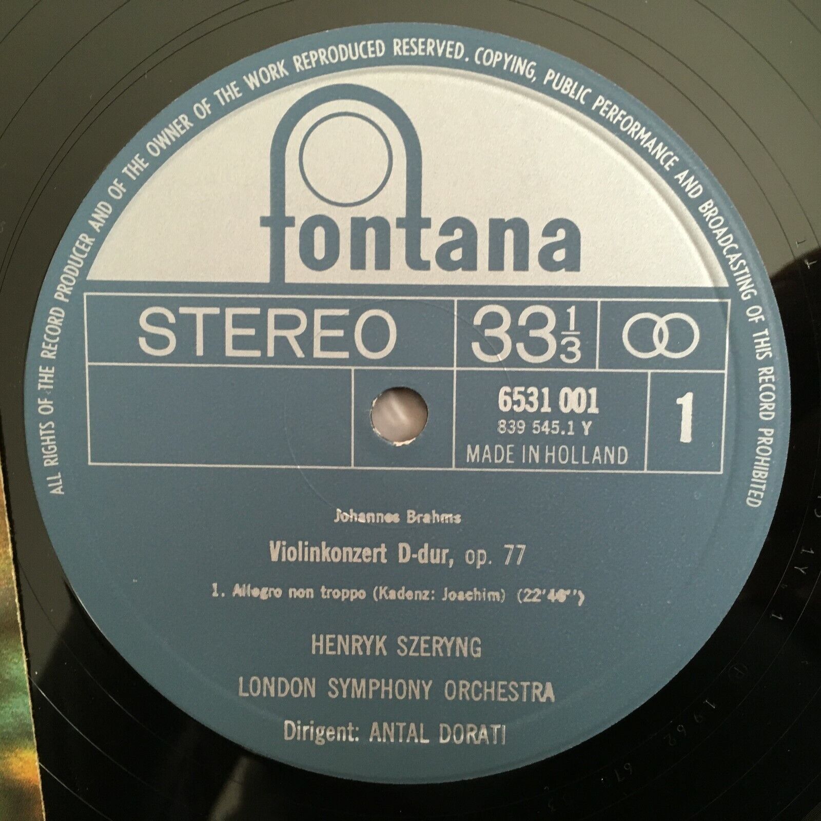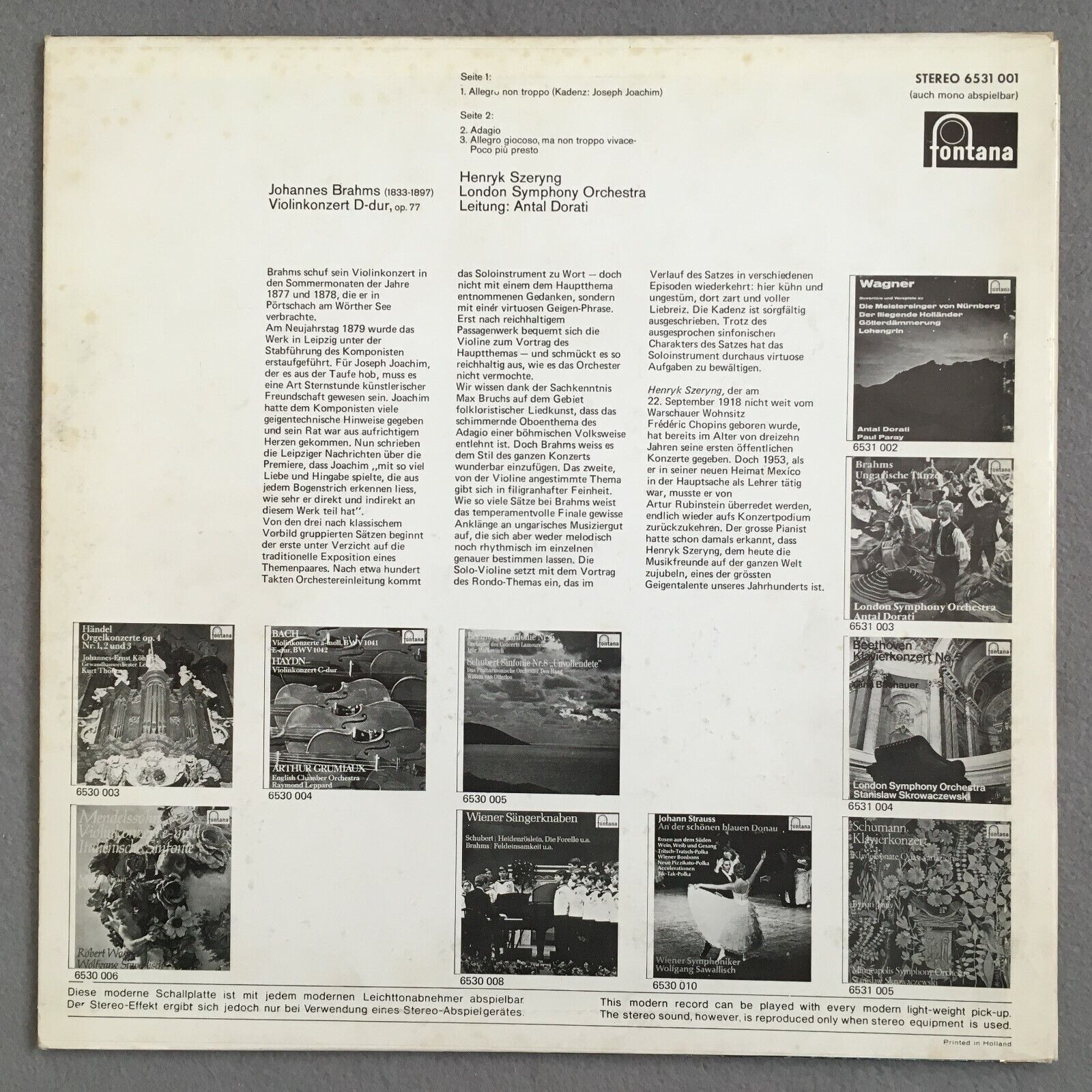 X757 Brahms Violin Concerto Op.77 Szeryng Dorati Fontana 6531 001 Stereo