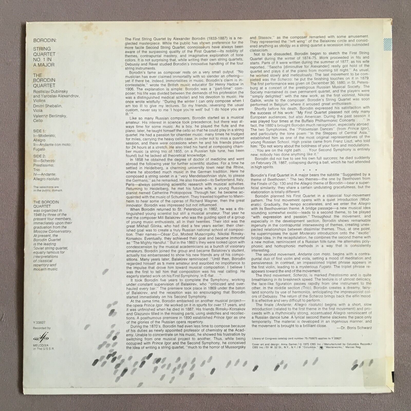 X772 Borodin String Quartet No.1 Borodin Quartet Dubinsky Melodiya Y 33827 St