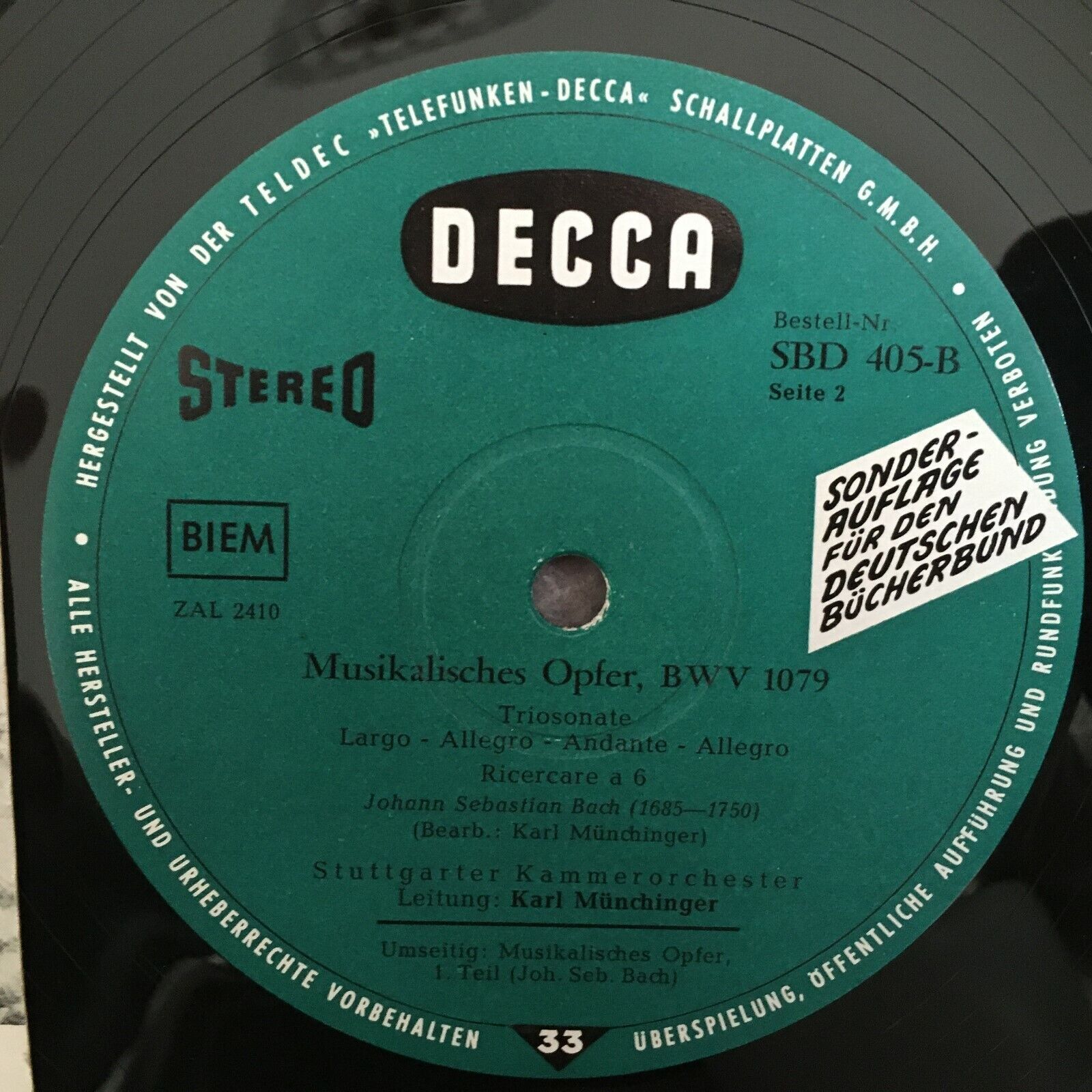 X877 Bach Musical Sacrifice BWV 1079 Munchinger DECCA SBD 405-B Stereo