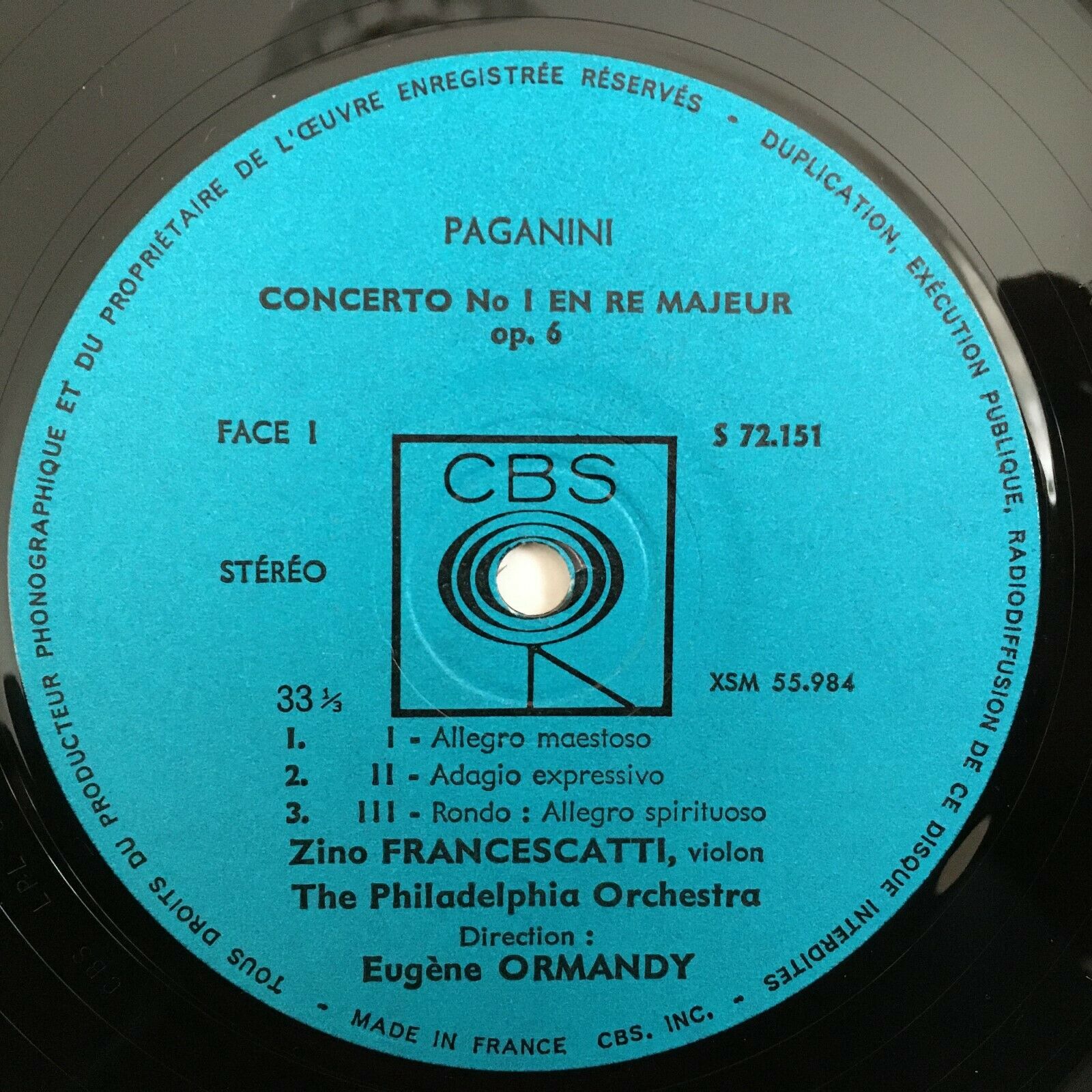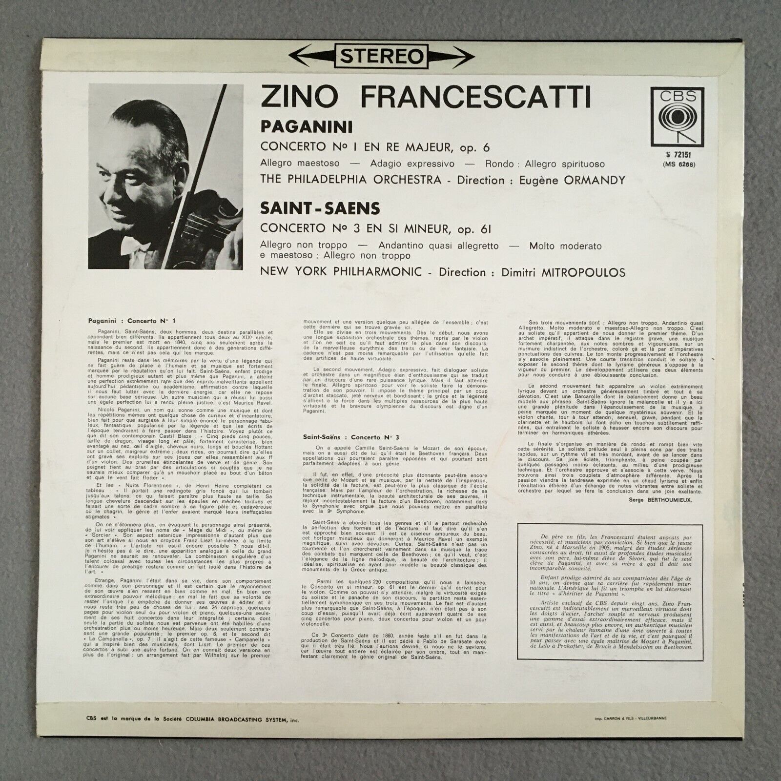 X905 Paganini / Saint-Saens Concertos Francescatti Ormandy CBS S 72151 Stereo