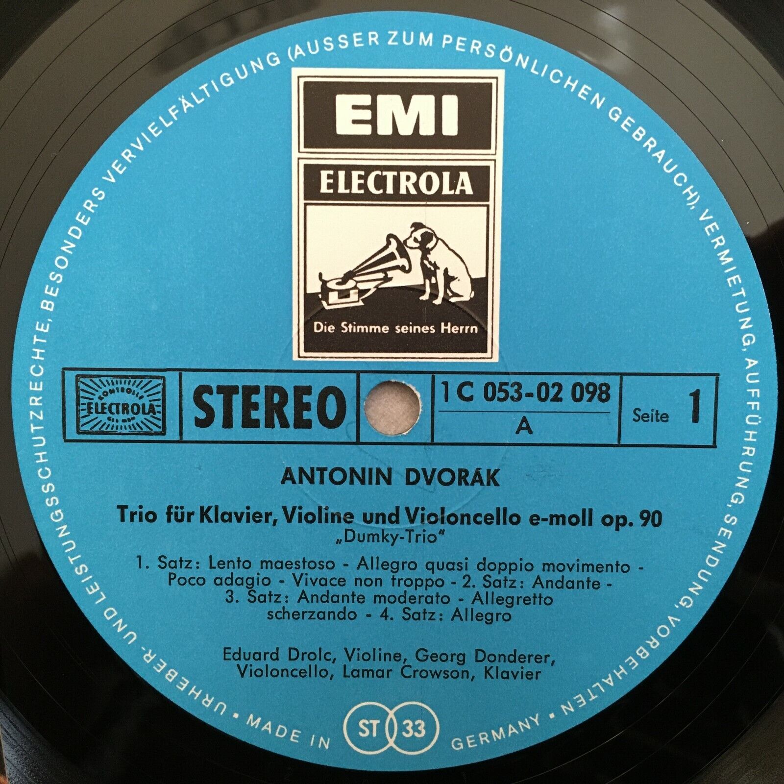 X971 Dvorak Piano Trio Drolc Donderer Crowson Electrola1 C 053-02 098 Stereo