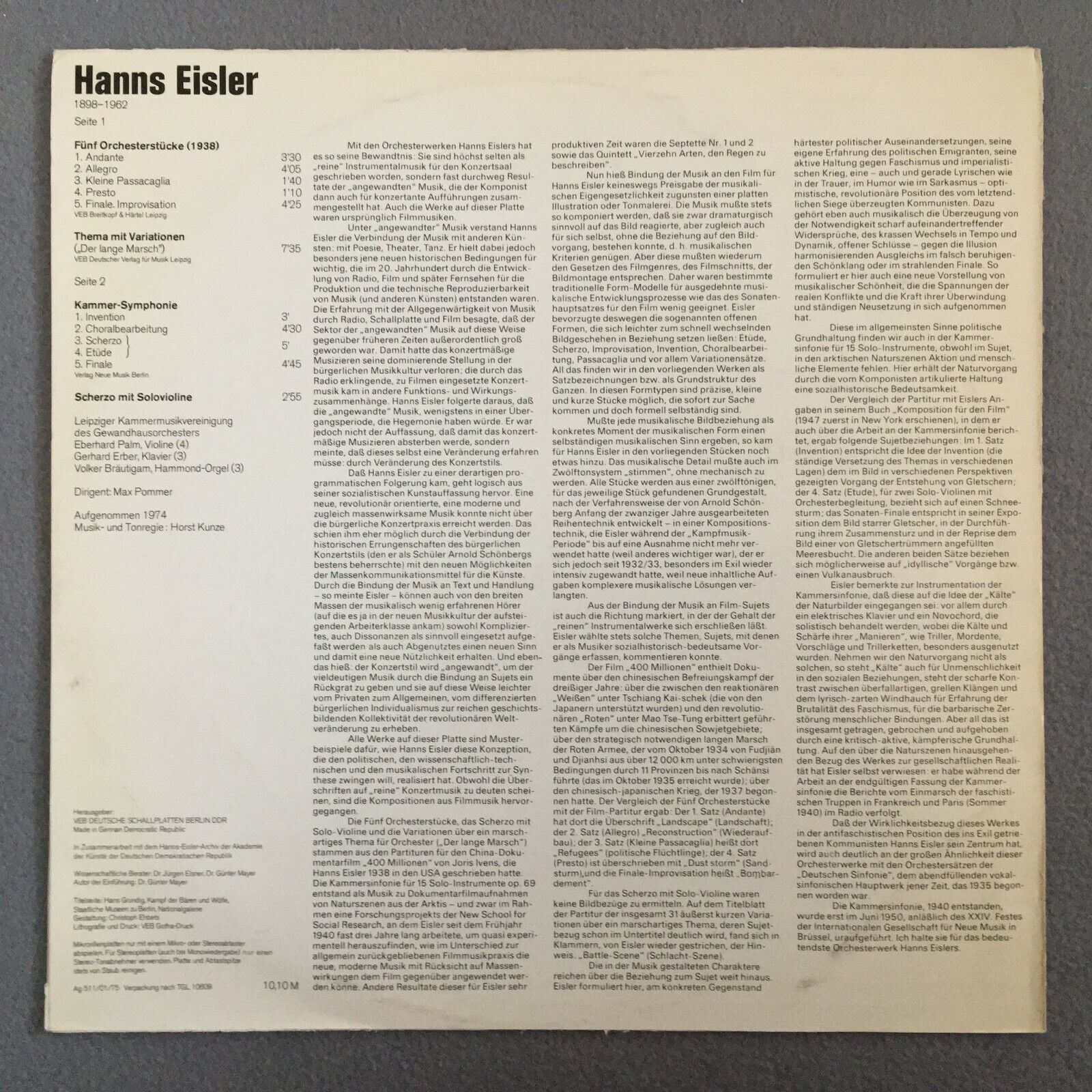 Z160 Eisler 5 Orchestra Pieces Scherzo Palm Erber Pommer NOVA 8 85 093 Stereo