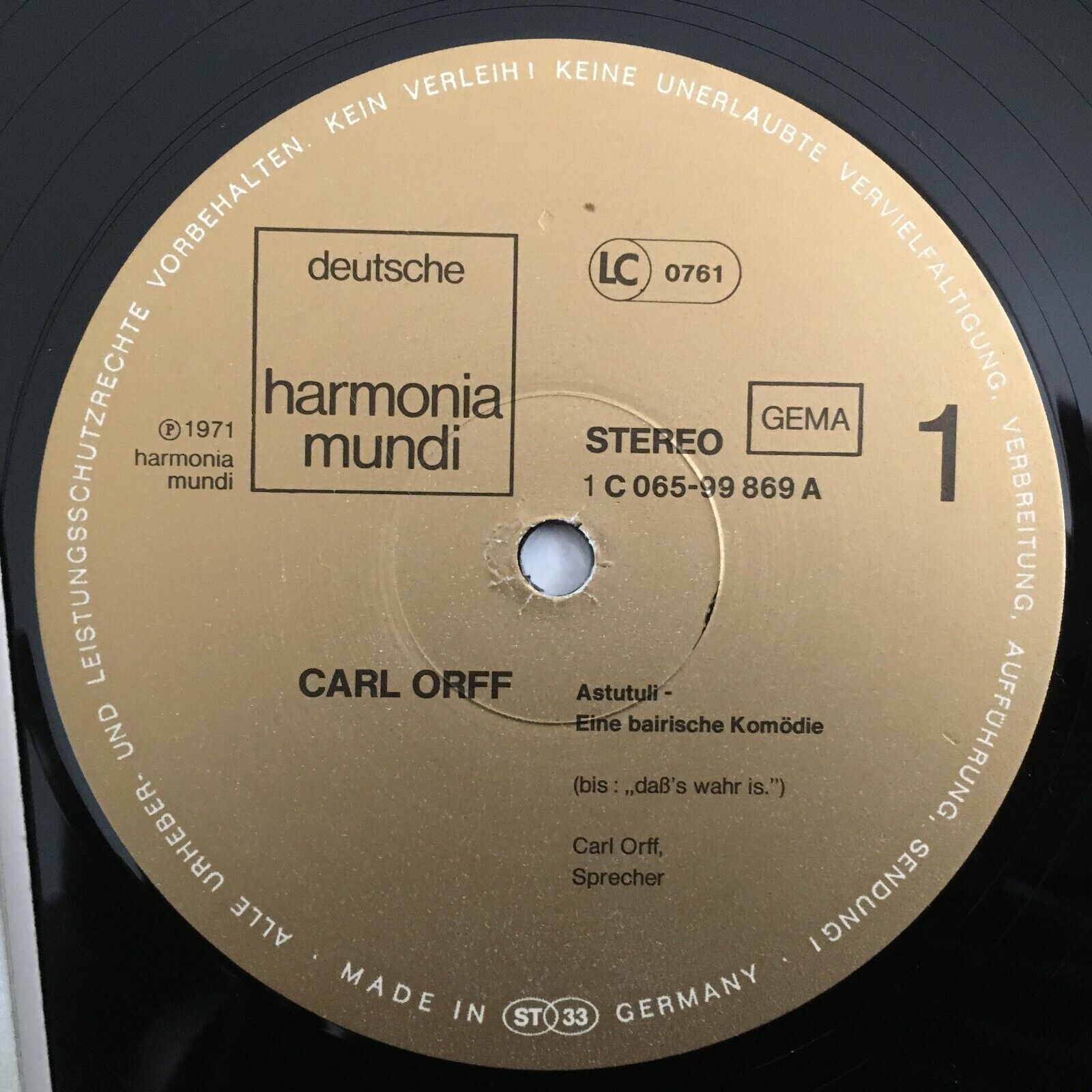 Z162 Carl Orff Astutuli Comedy Harmonia Mundi 1C 065-99 869 Stereo