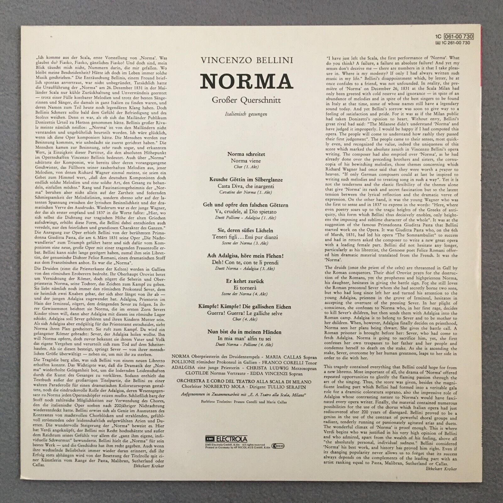 Z045 Bellini Norma Callas Corelli Ludwig Serafin EMI 1C 061-00 730 Stereo