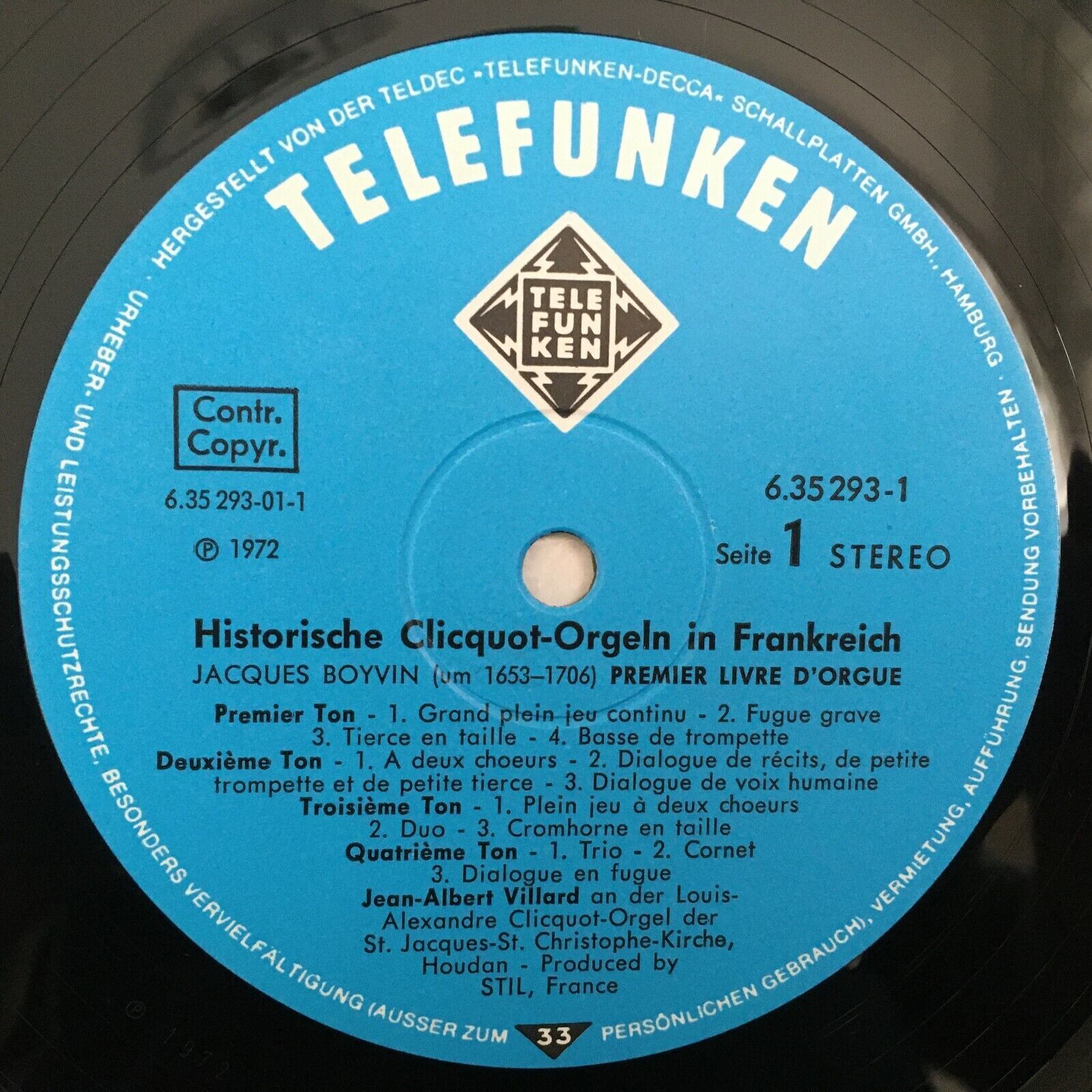 B135 Historical Organs in France Villard Boyer 2LP Telefunken 6.35293 DX Stereo