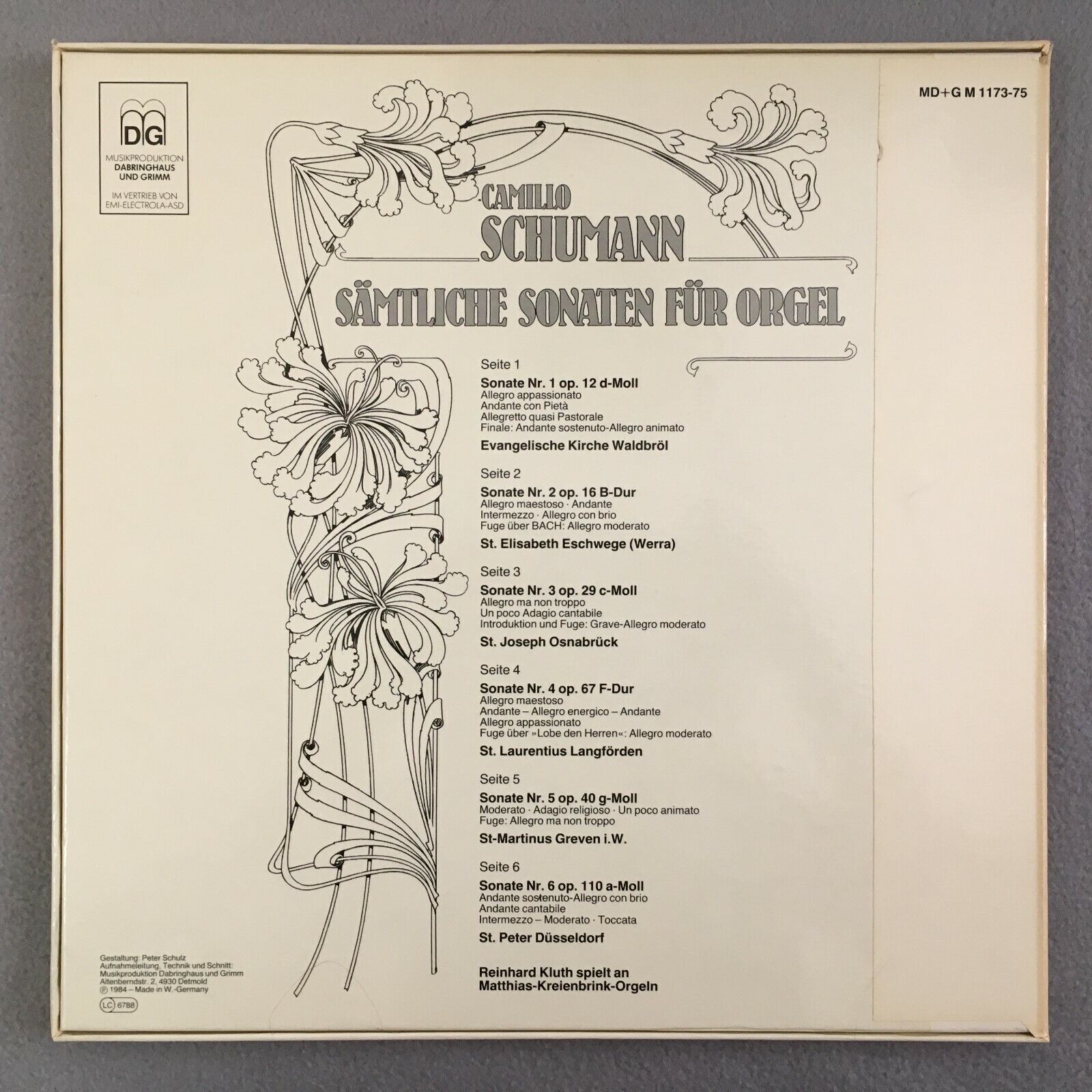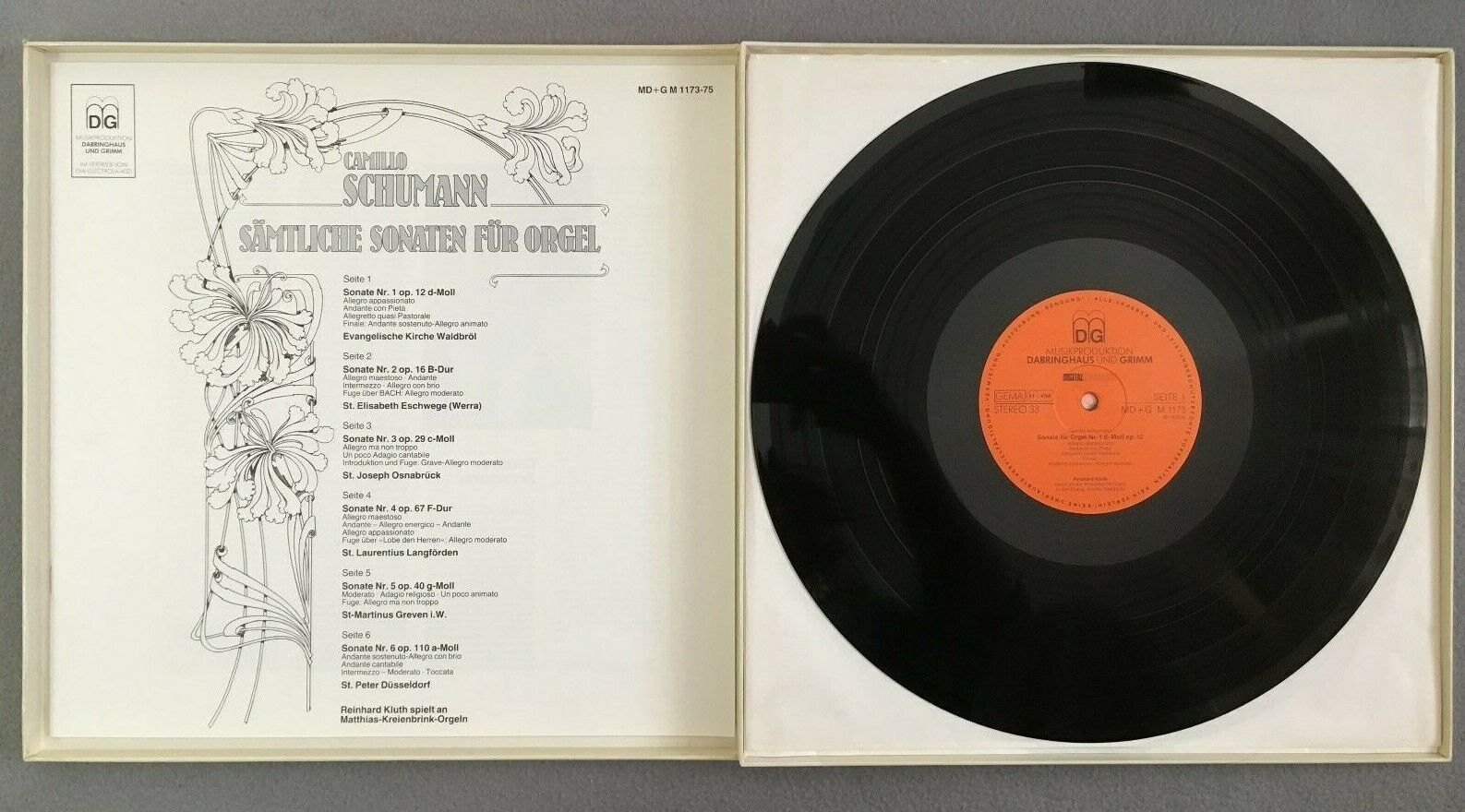 B165 Schumann Organ Sonatas Kluth 3LP DG MD + G M 1173-72 Digital Stereo
