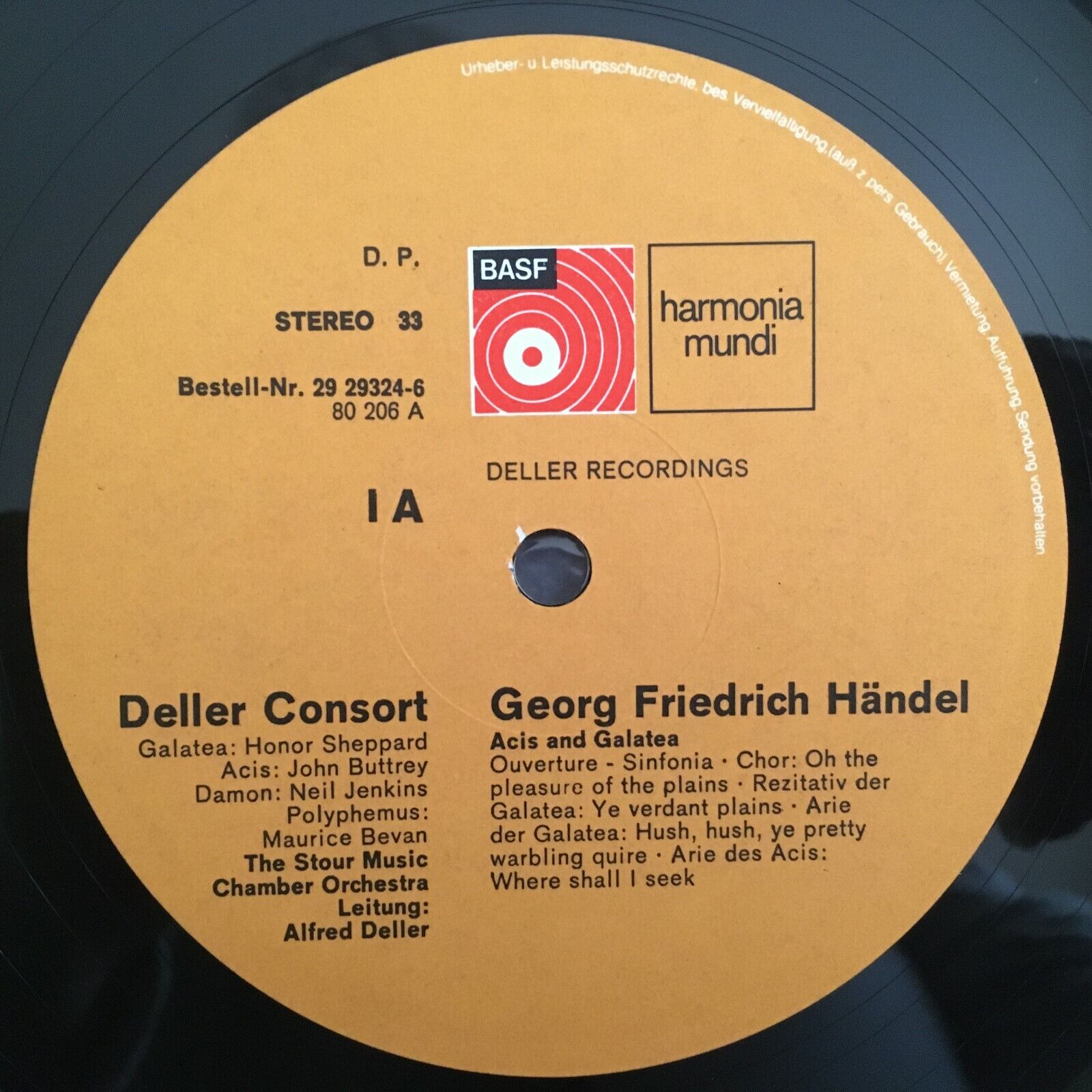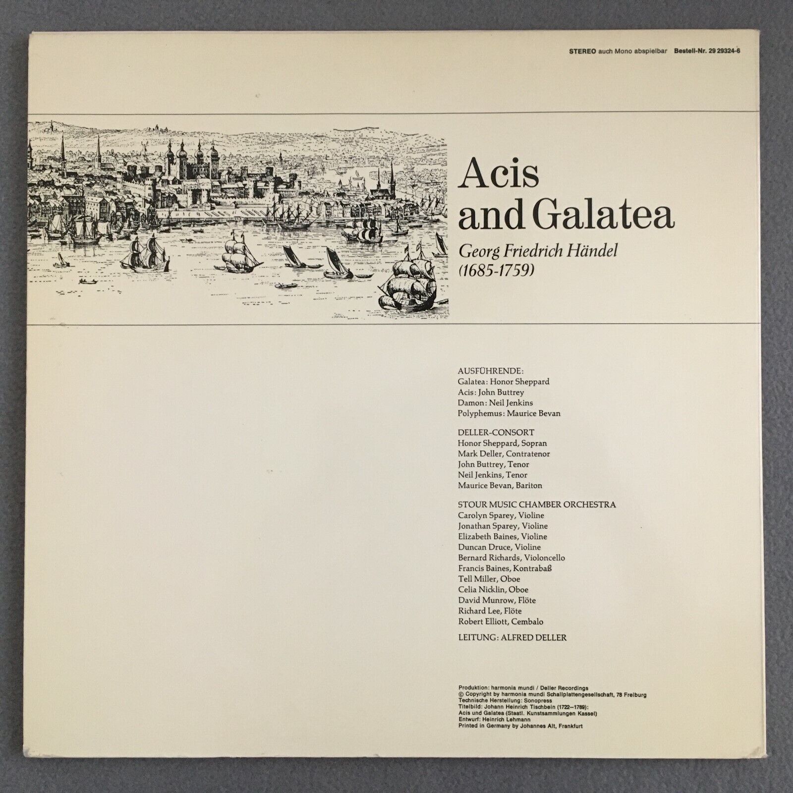 Z256 Handel Acis & Galatea Deller 2LP Harmonia Mundi 29 29324-6 Stereo