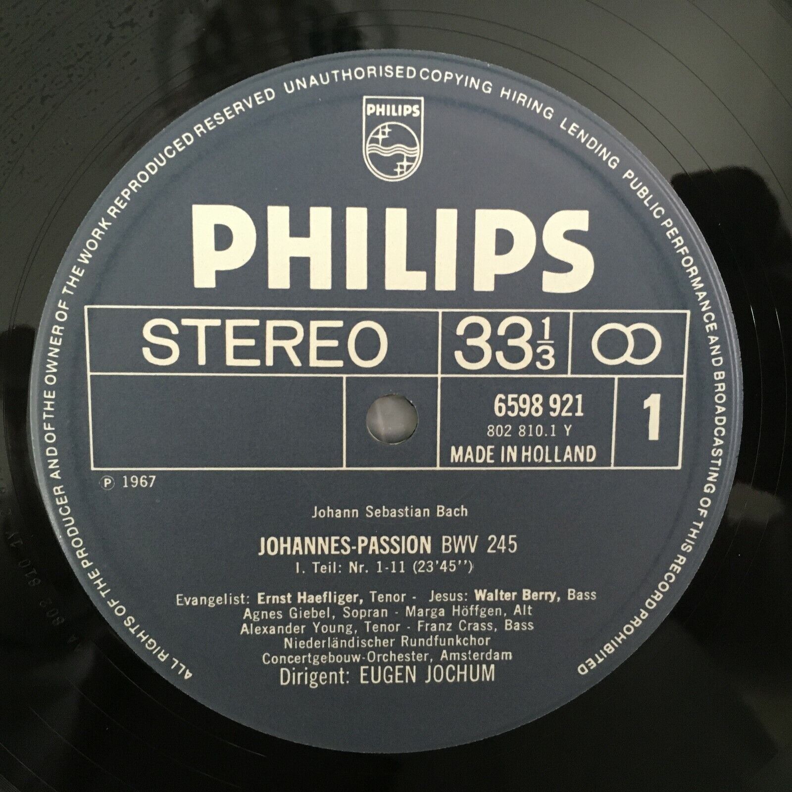 B180 Bach St. John Passion Hoeffgen Haefliger Jochum 3LP Philips 6747 490 Stereo