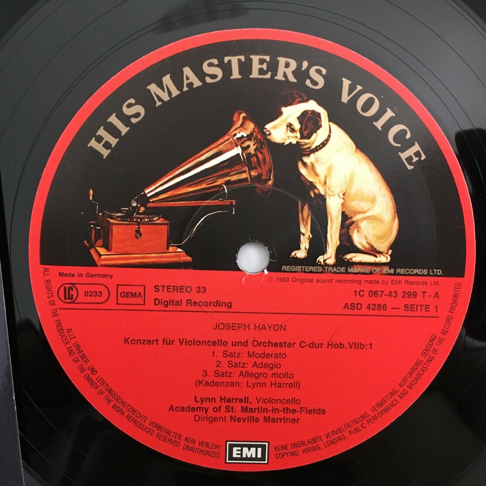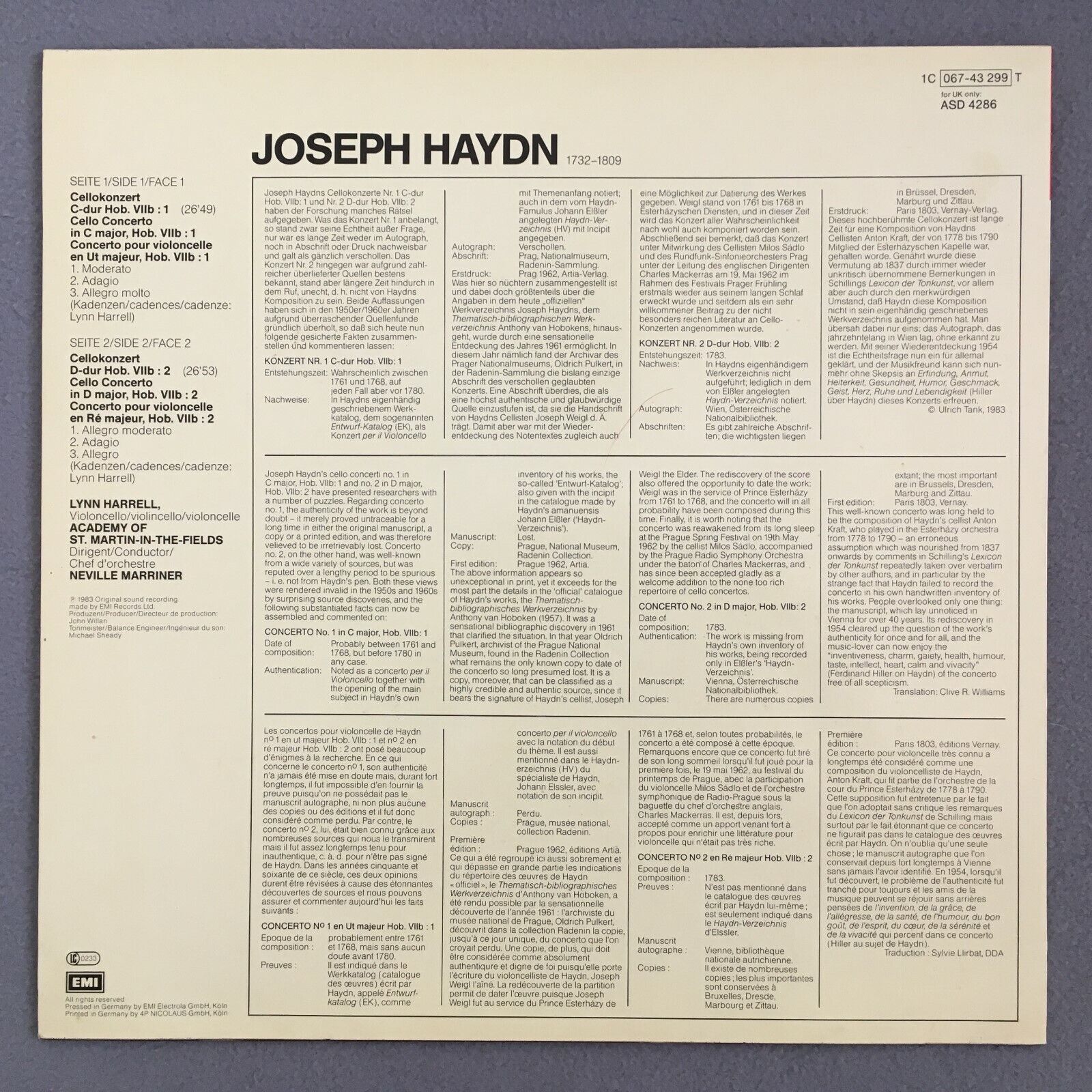 Z326 Haydn Cello Concertos Harrell Marriner EMI 1C 067-43 299 T Digital Stereo