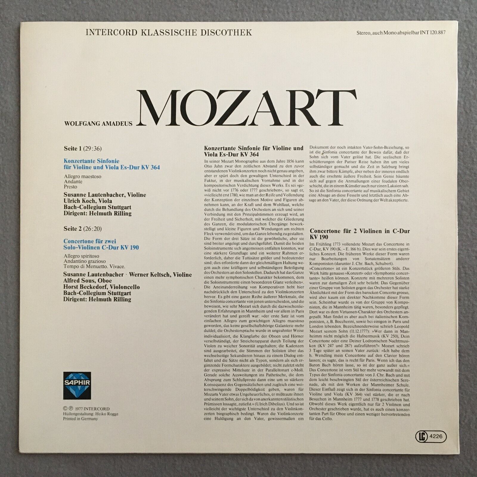 Z888 Mozart Konzertante Symphony Lautenbacher Rilling Saphir INT 120.887 Stereo