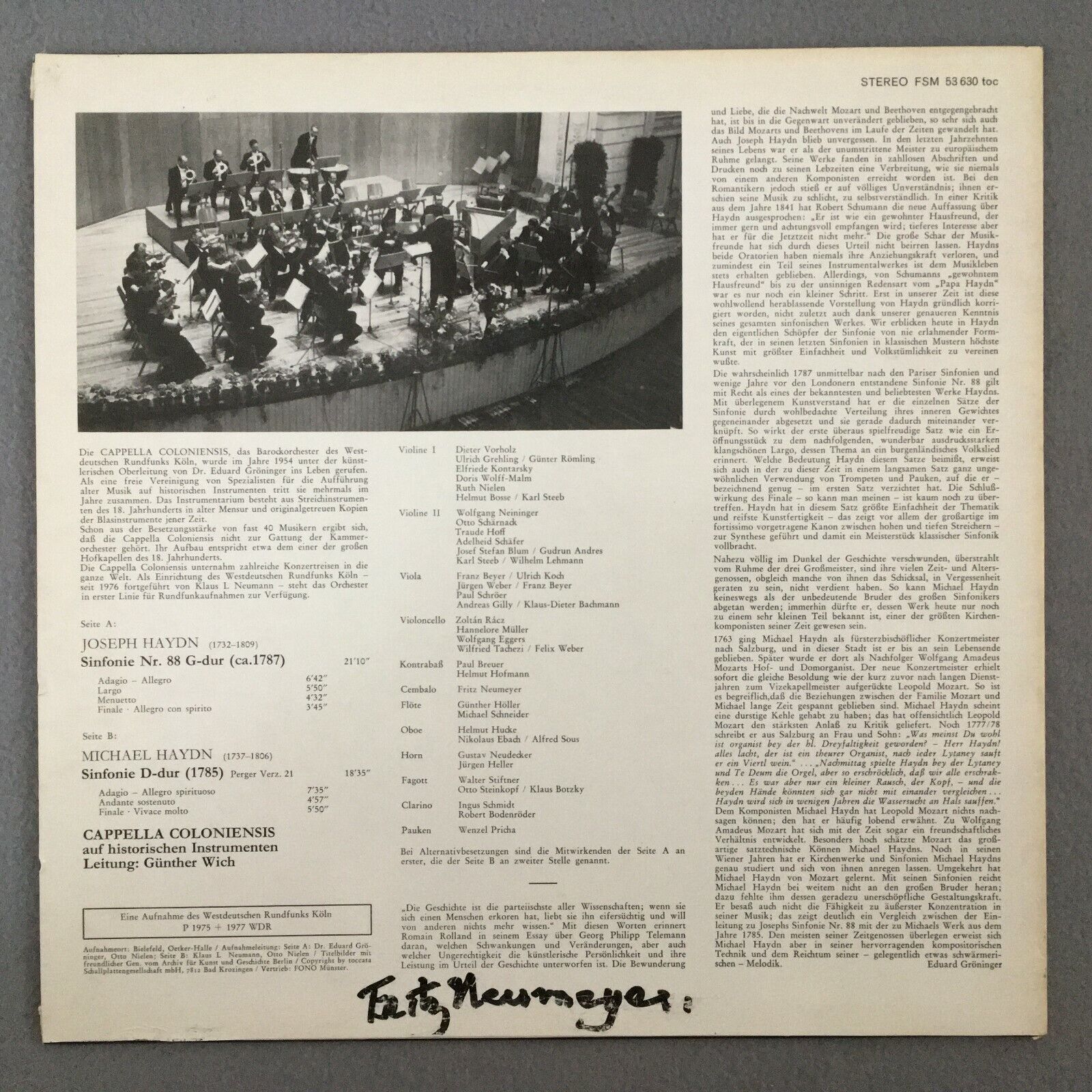 Y151 M. & J. Haydn Symphonies Wich Toccata FSM 53 630 toc Stereo Signed Neumeyer