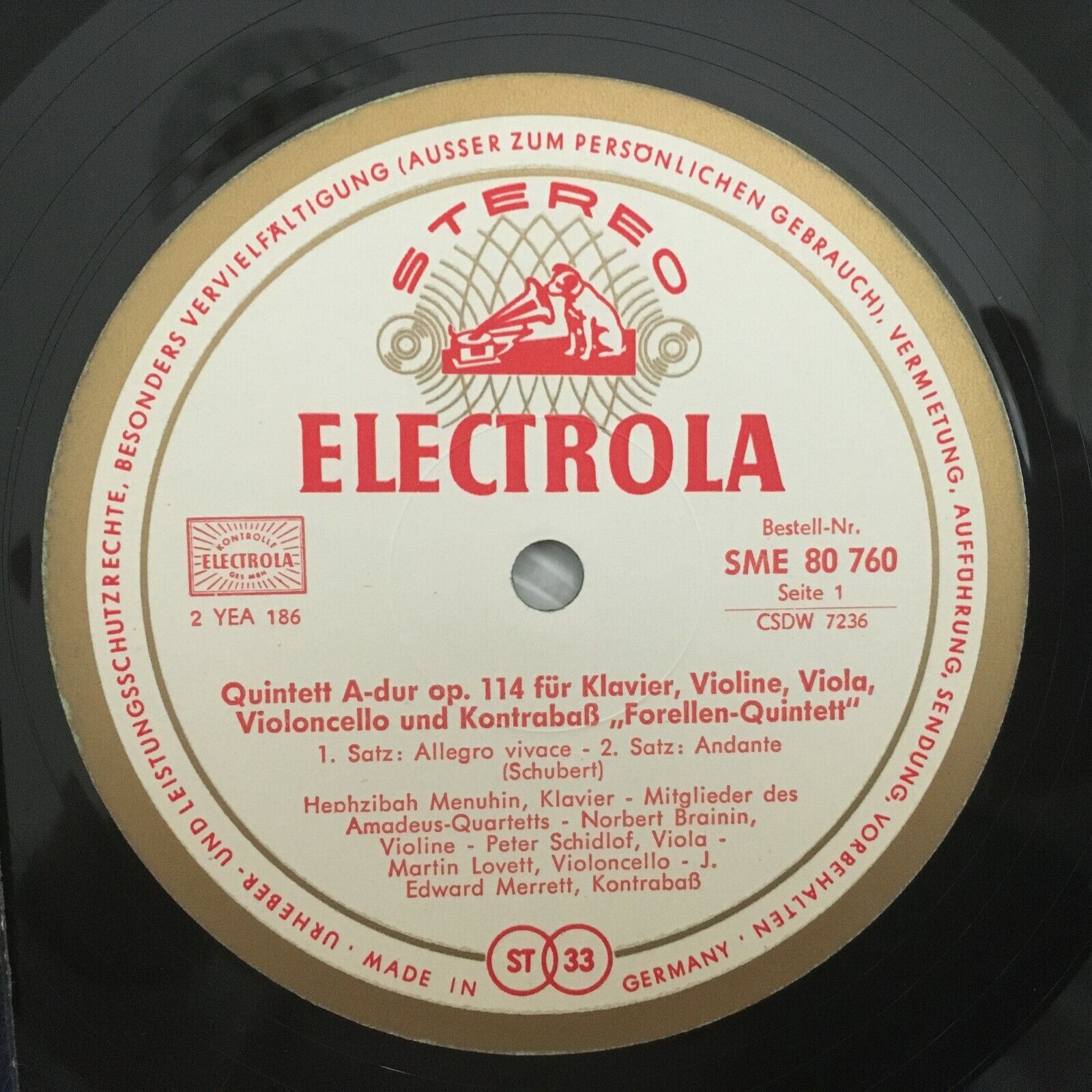 Y326 Schubert Quintet Menuhin Brainin Lovett Electrola w/g SME 80 760 Stereo