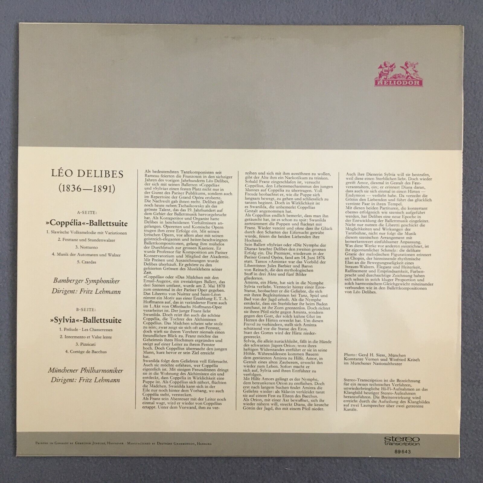 Y405 Delibes Ballet Suites Coppelia Sylvia Lehmann Heliodor 89 643 Stereo