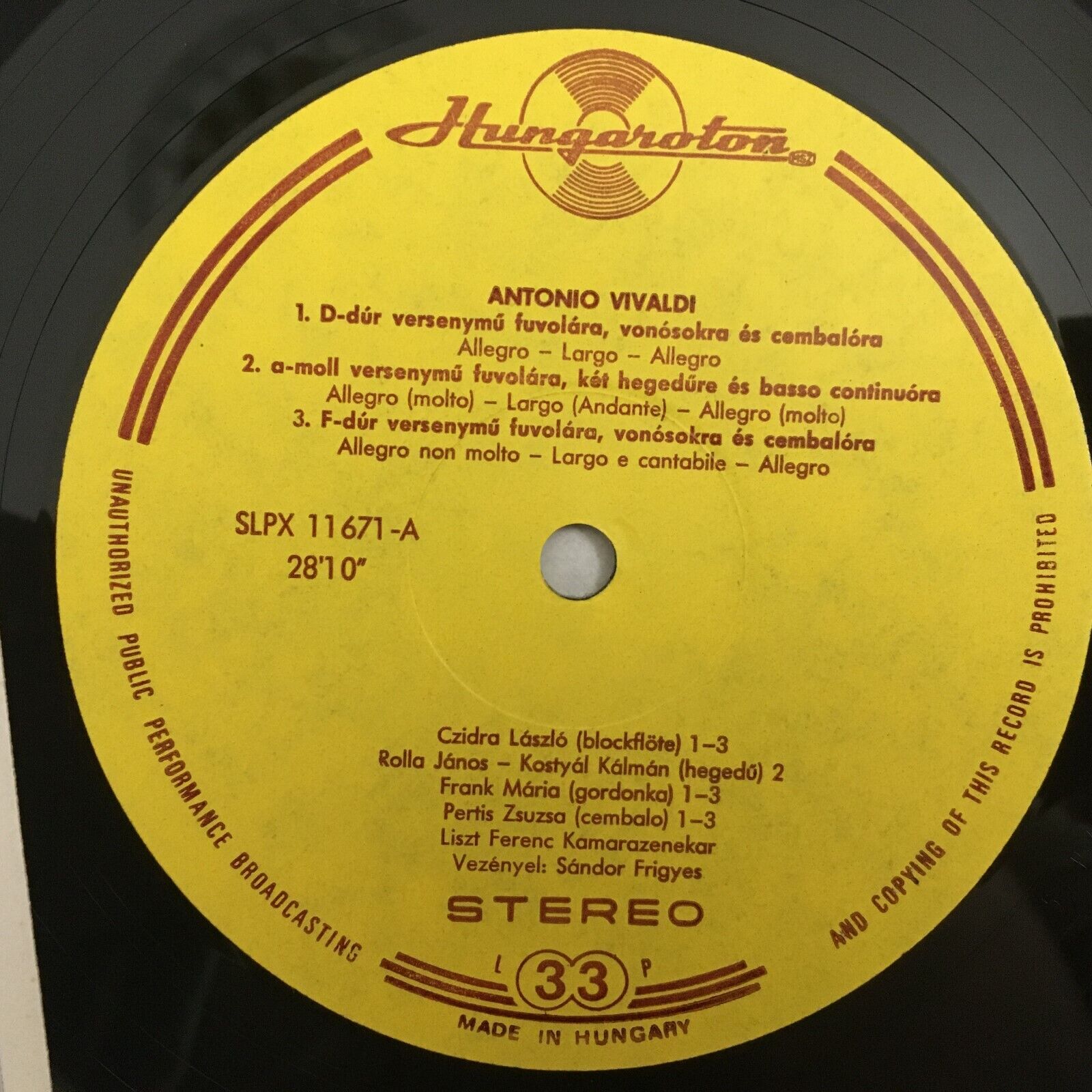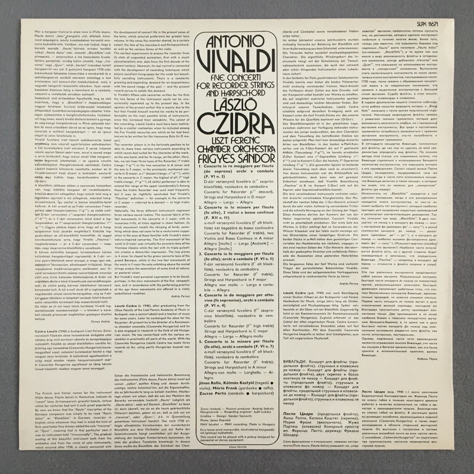 Y406 Vivaldi 5 Concertos Czidra/Recorder Sandor Hungaroton SLPX 11671 Stereo
