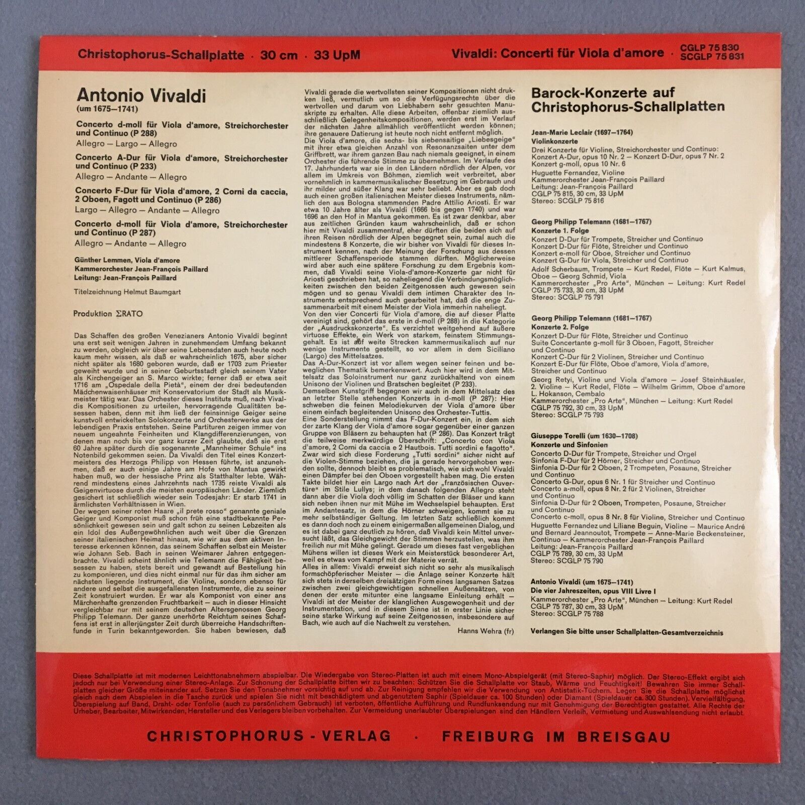 Y416 Vivaldi Concertos Viola d´amore Lemmen Paillard Christophorus CGLP 75 830