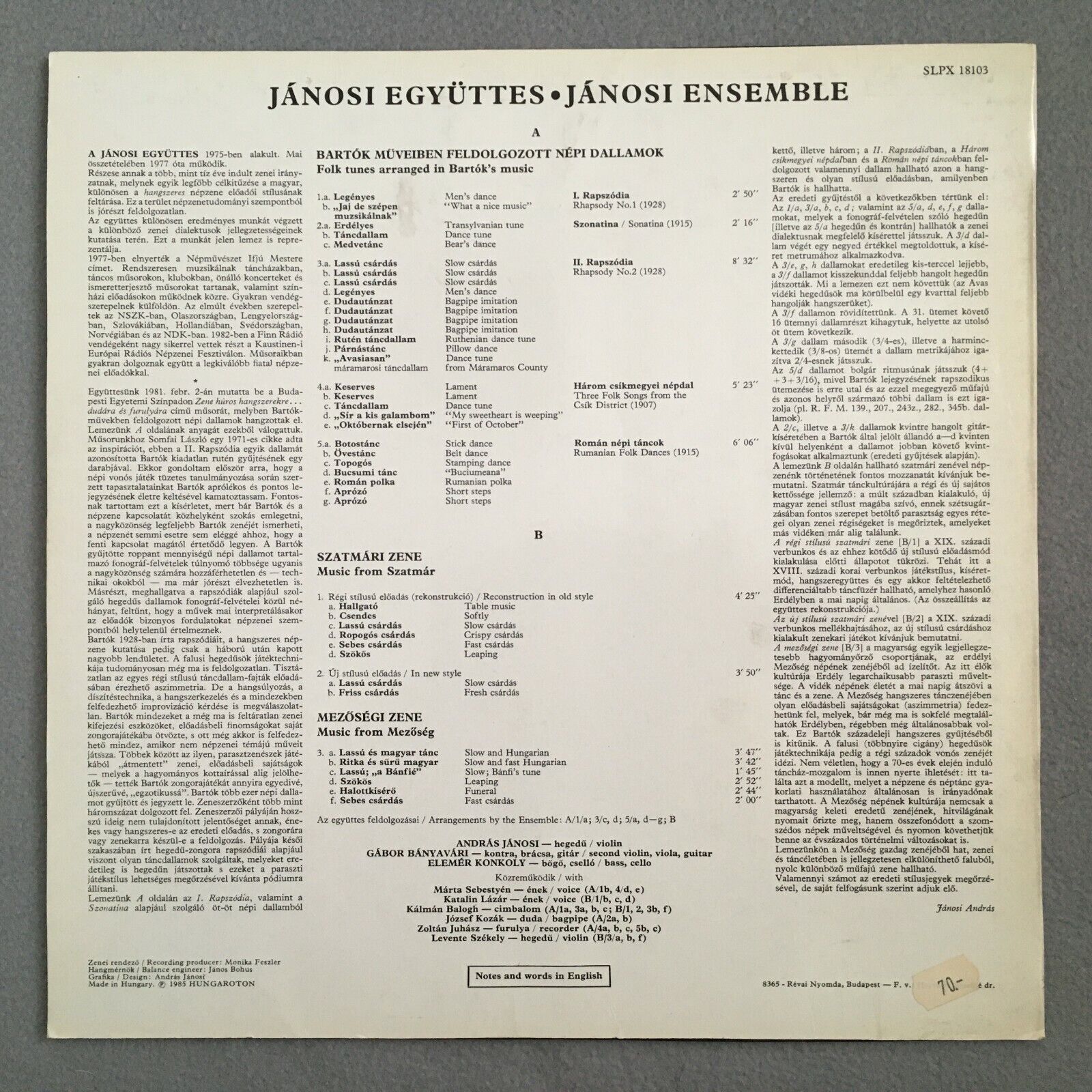 Y584 Bartok Rhapsodies Janosi Ensemble Szatmar Hungaroton SLPX 18103 Stereo