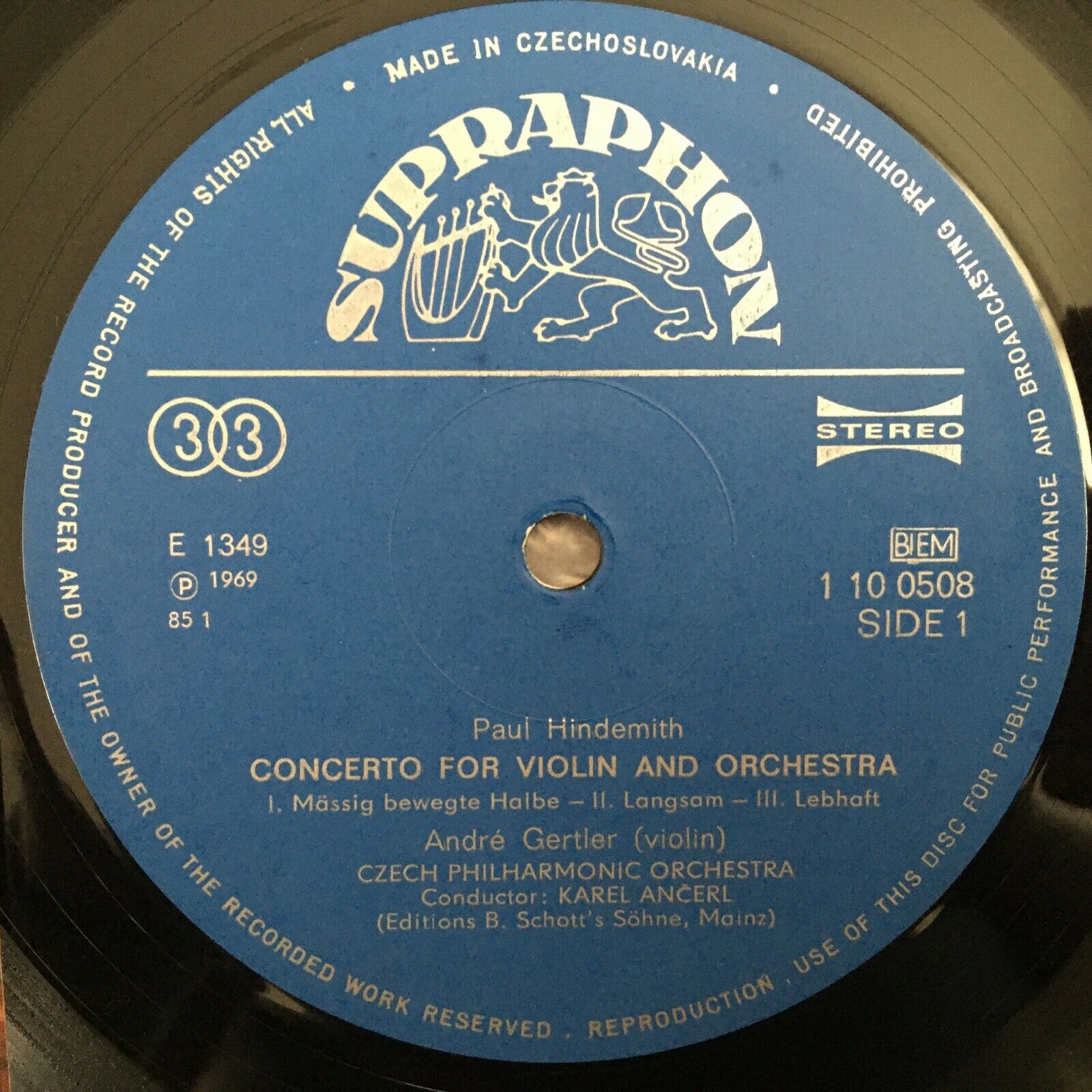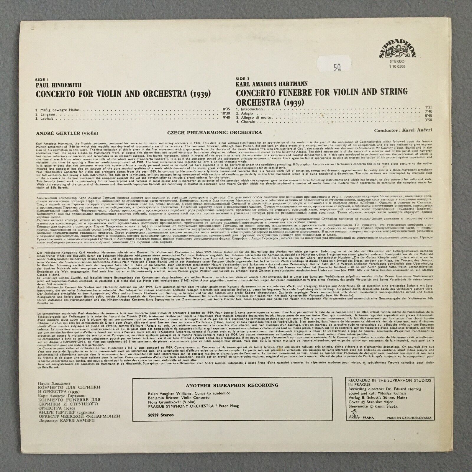 Y744 Hindemith Hartmann Violin Concertos Gertler Ancerl Supraphon 1 10 0508 St