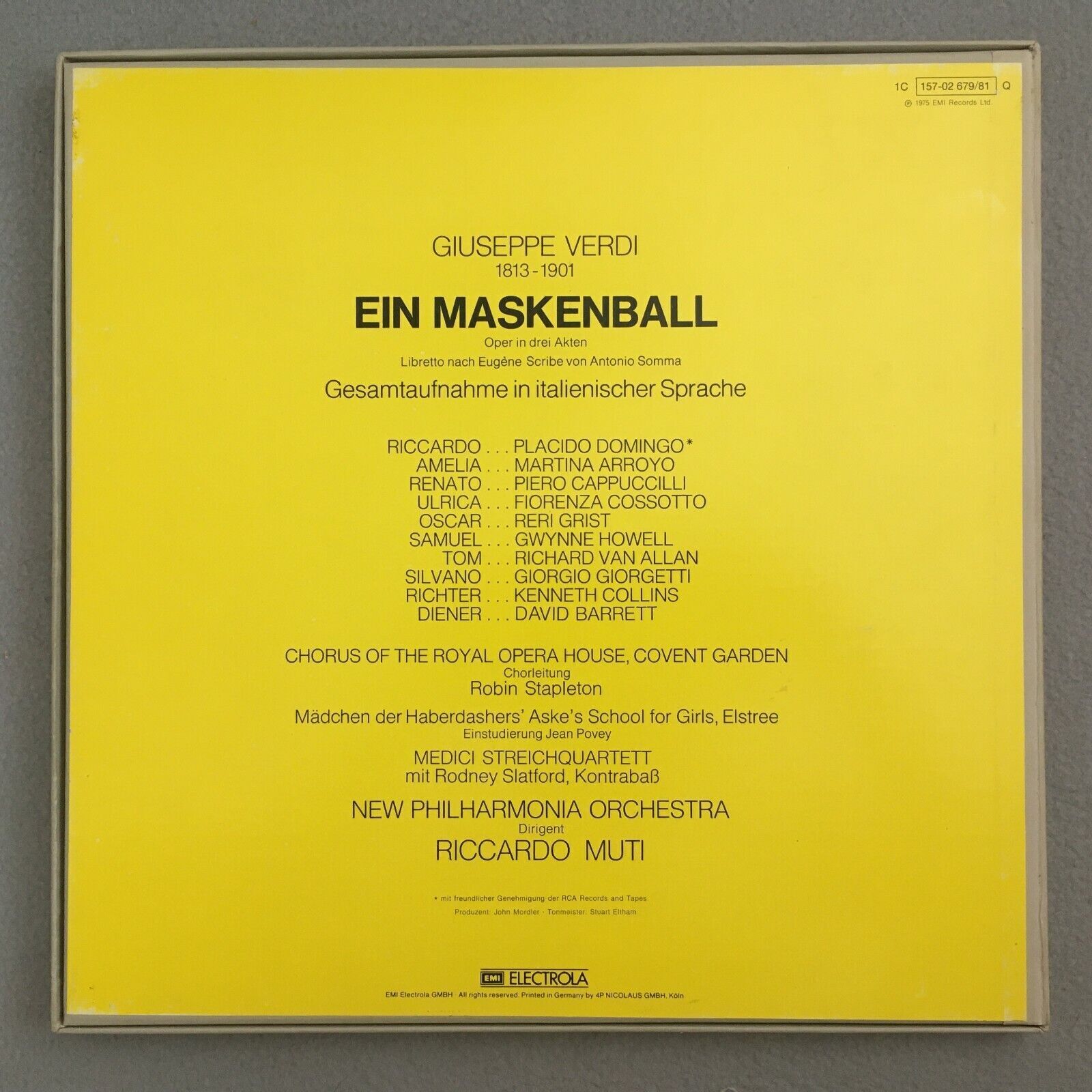 B279 Verdi Un Ballo in Maschera Arroyo Domingo Muti 3LP EMI 1C 157-02 679/81 Q