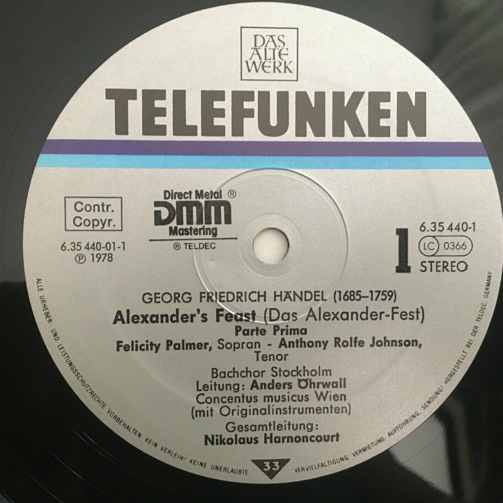 B312 Handel Alexander´s Feast Palmer Harnoncourt 2LP Telefunken 6.35440 EK St