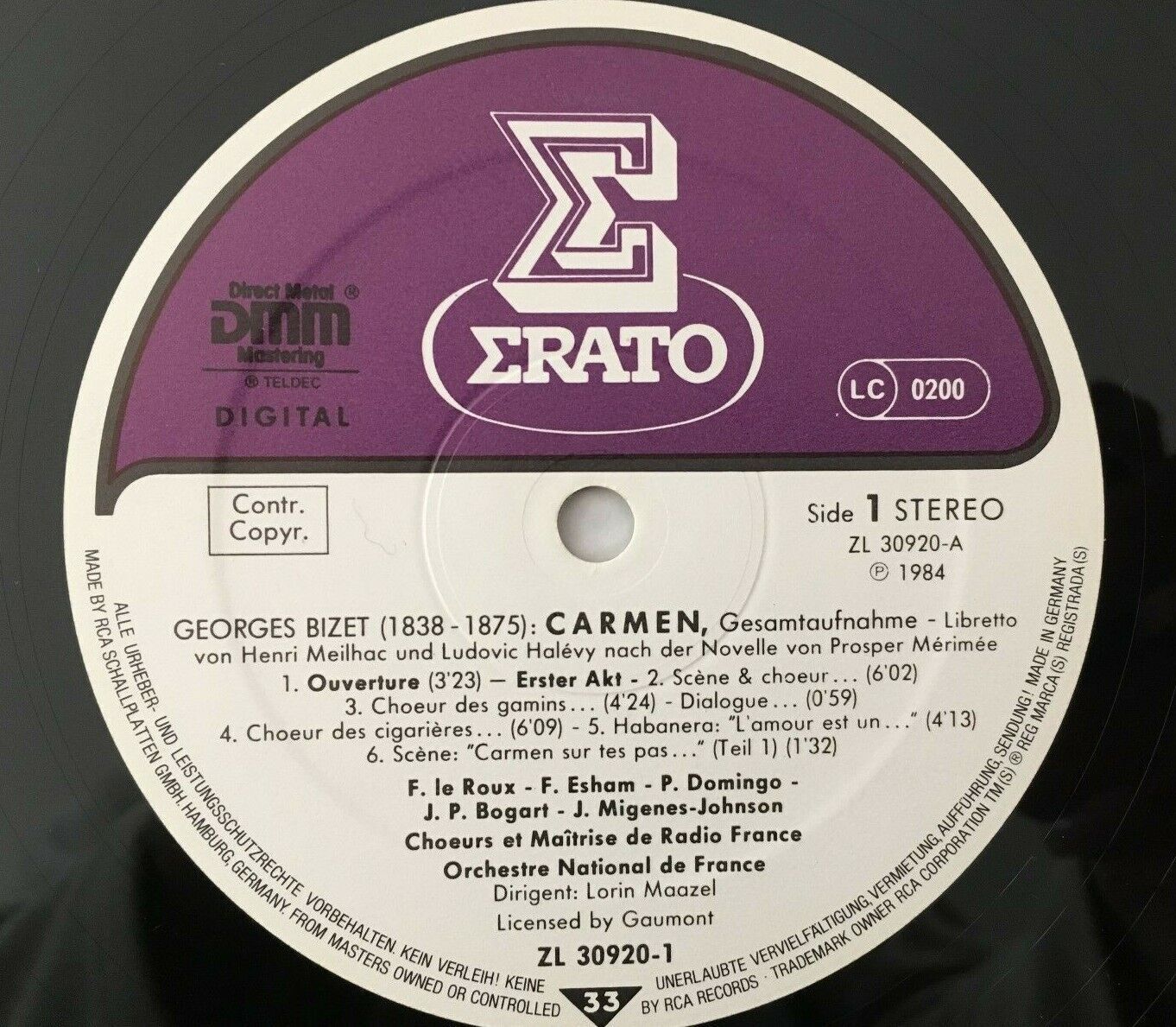G062 Bizet Carmen Migenes Johnson Domingo Maazel 3LP Erato 40514-2 Digital Stere