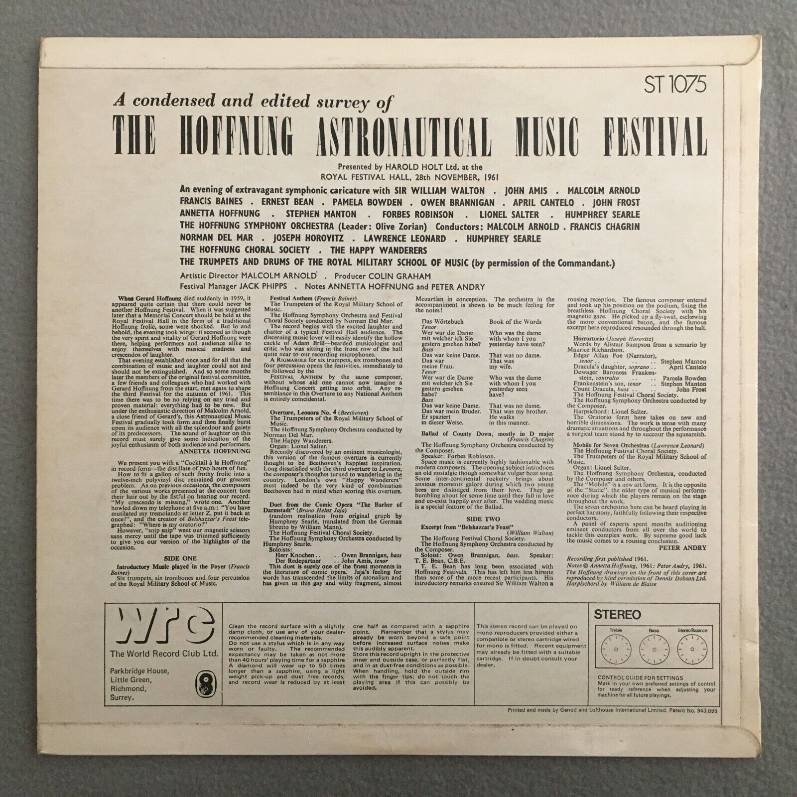 Y925 The Hoffnung Astronautical Music Festival 1961 Horovitz WRC ST 1075 Stereo