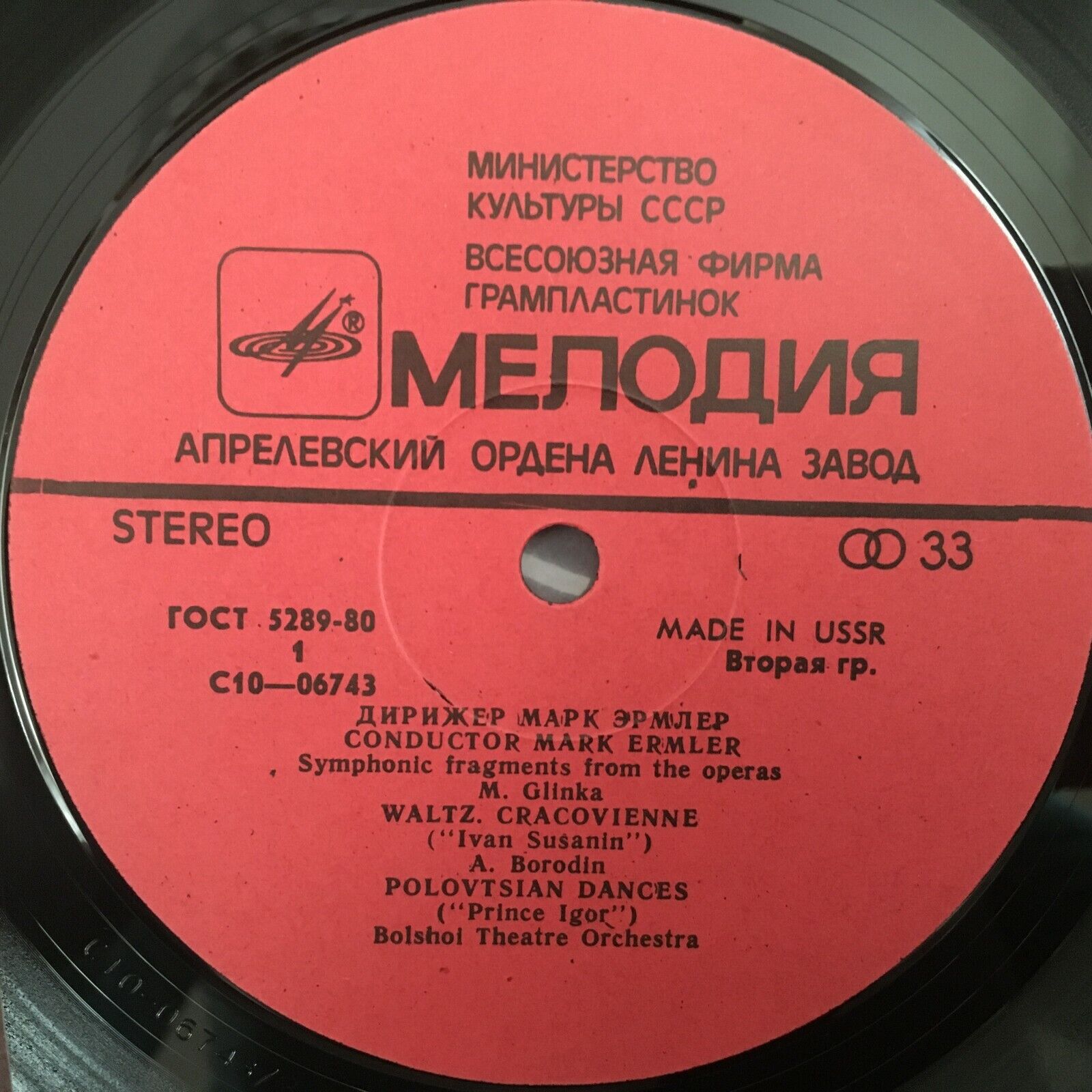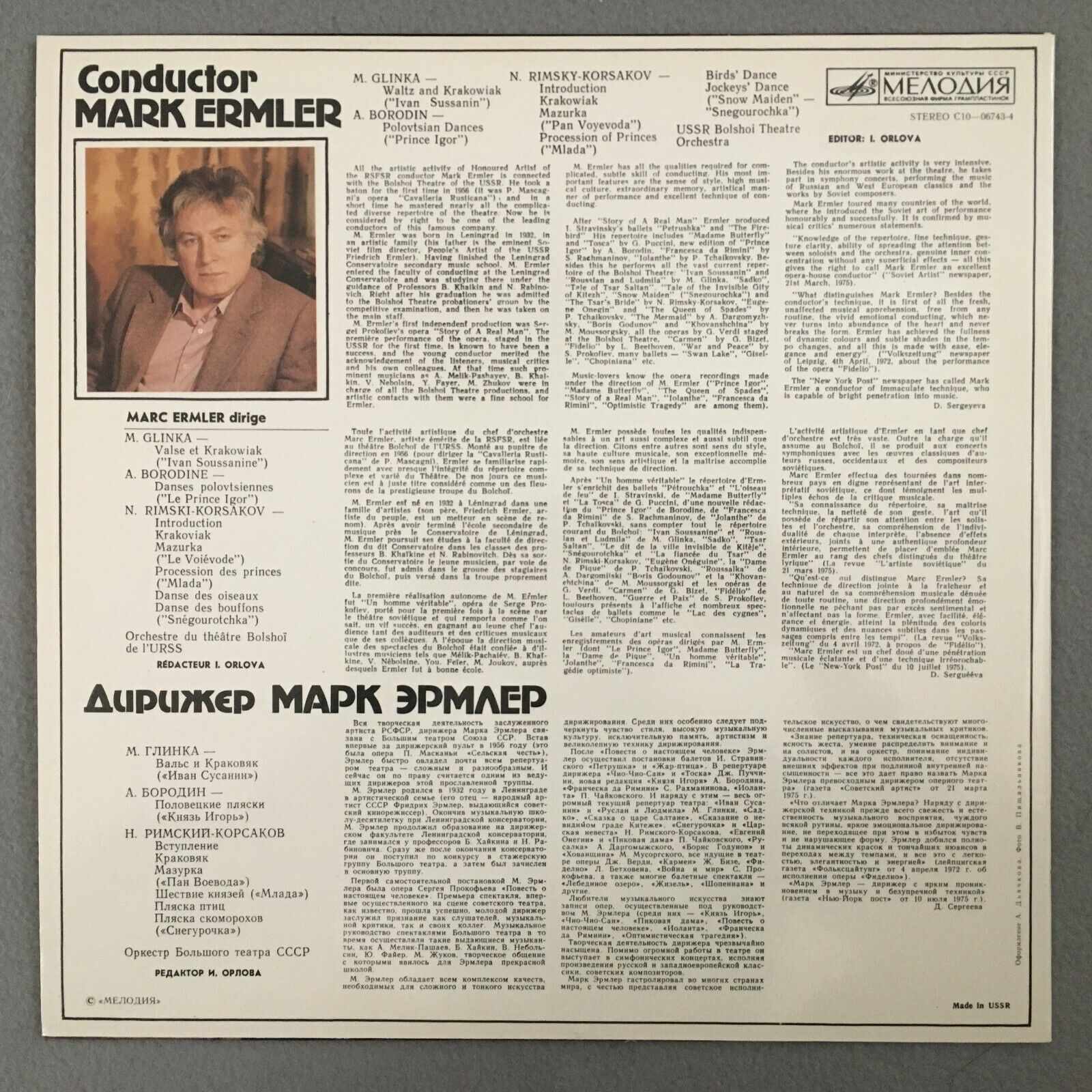 Y964 Glinka Waltz Borodin Dances Ermler Melodiya C10-06743-4 Stereo