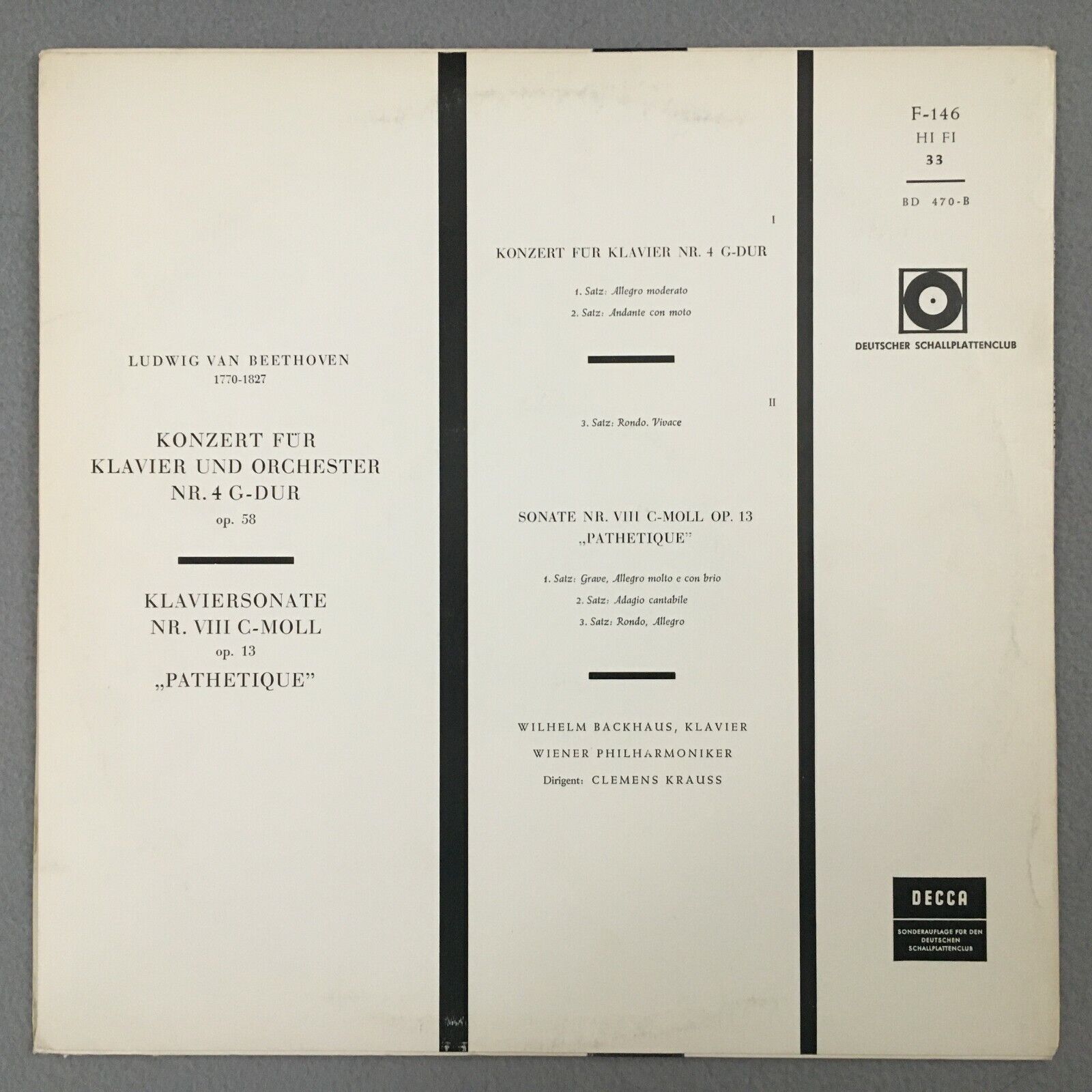 Y972 Beethoven Piano Concerto No.4 Sonata Backhaus Krauss VPO DECCA F-146