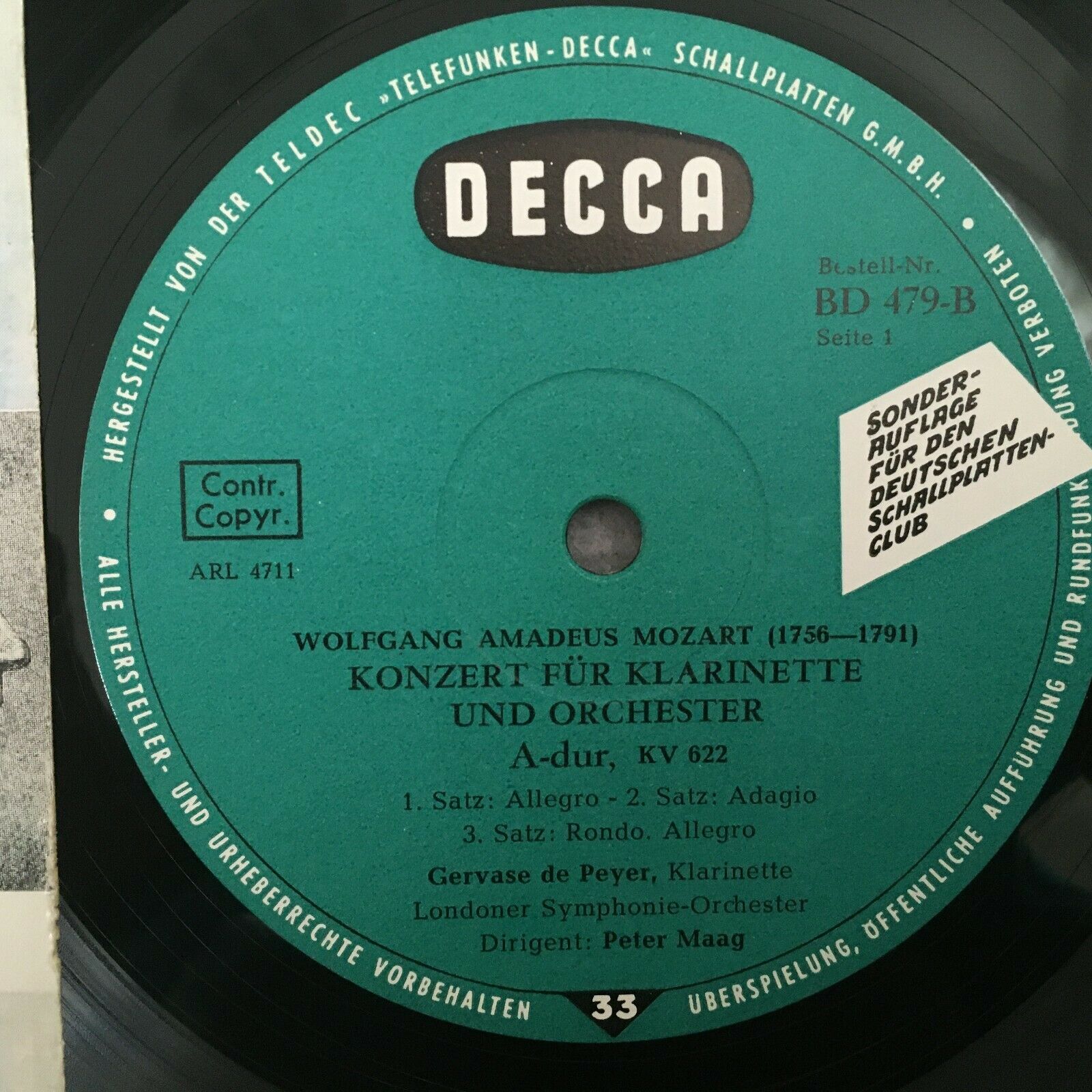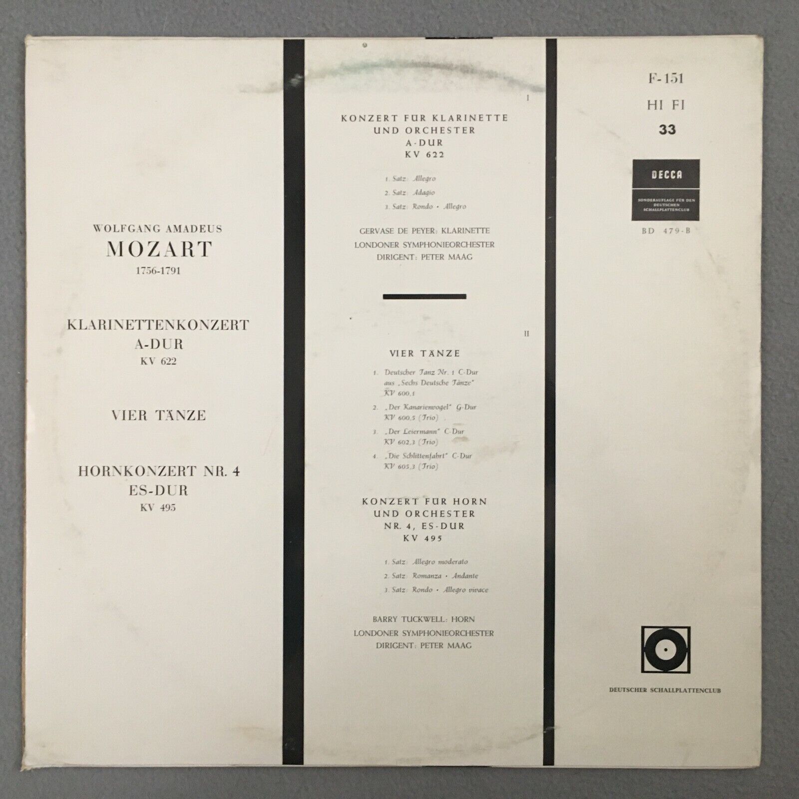 Y974 Mozart Clarinet Concerto Horn Concerto De Peyer Tuckwell Maag DECCA F-151