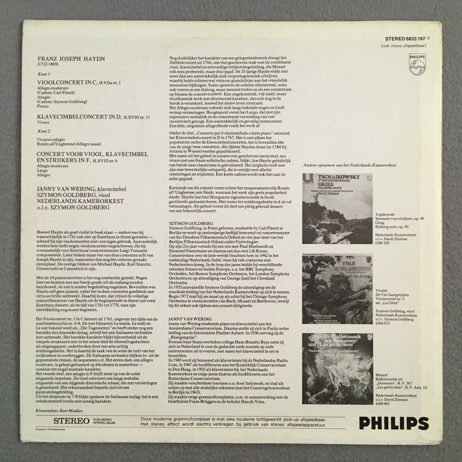 V332 Haydn Violin Concertos Wering Goldberg Philips 6833 167 Stereo
