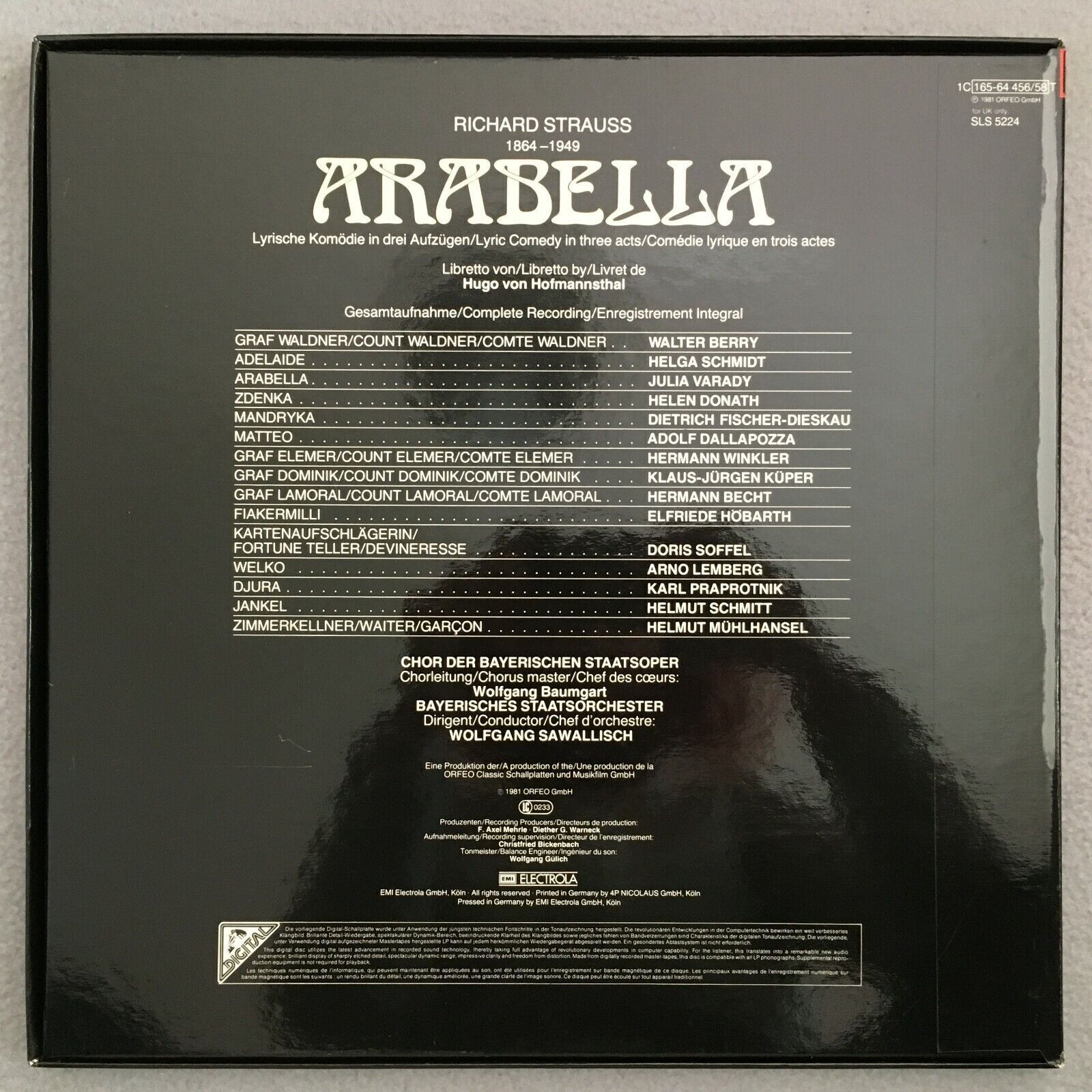 B876 R. Strauss Arabella Varady Sawallisch 3LP EMI 1C 165-64 456/58 T Digital St