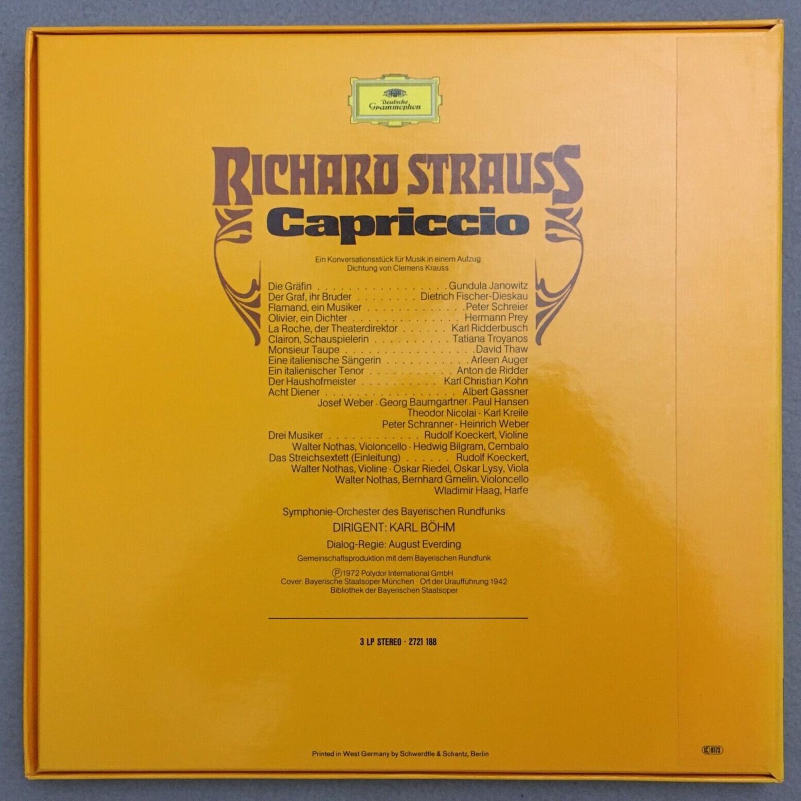 B894 R. Strauss Capriccio Fischer-Dieskau Janowitz Bohm 3LP DGG 2721 188 Stereo