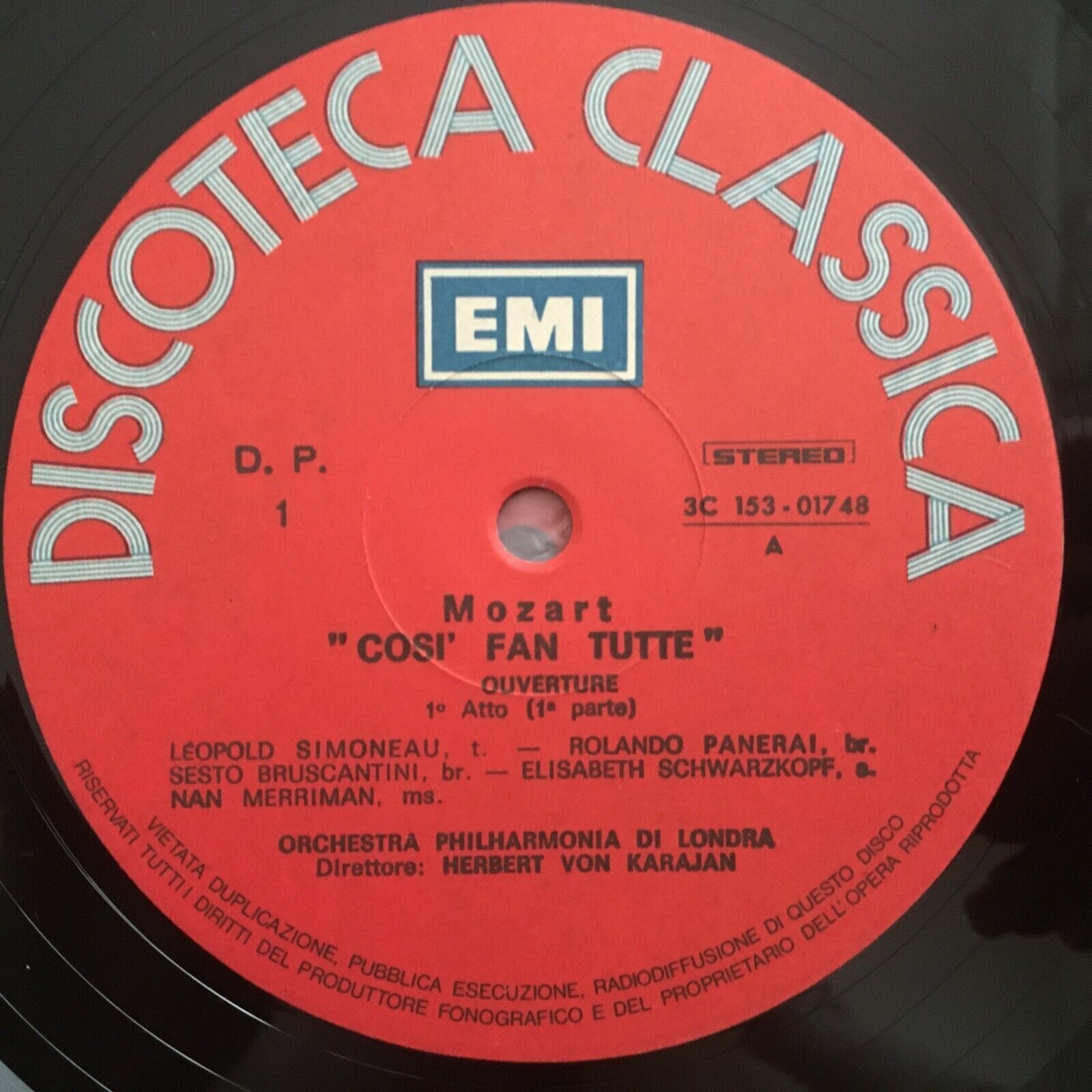 B391 Mozart Cosi fan Tutte Schwarzkopf Karajan 3LP EMI 3 C 153-01748/50 Stereo