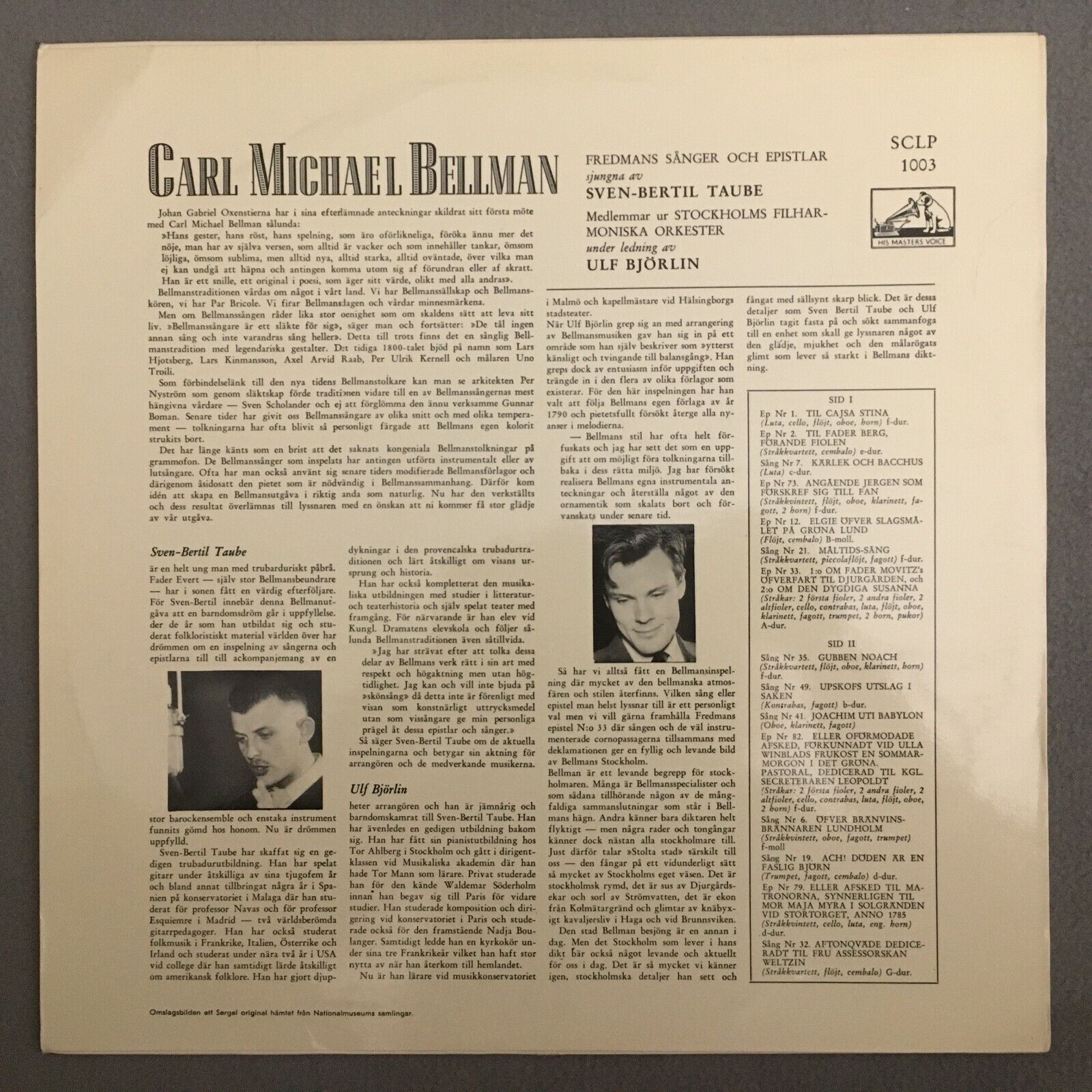 V421 Bellman Fredmans Sänger Taube Björlin HMV SCLP 1003 Stereo