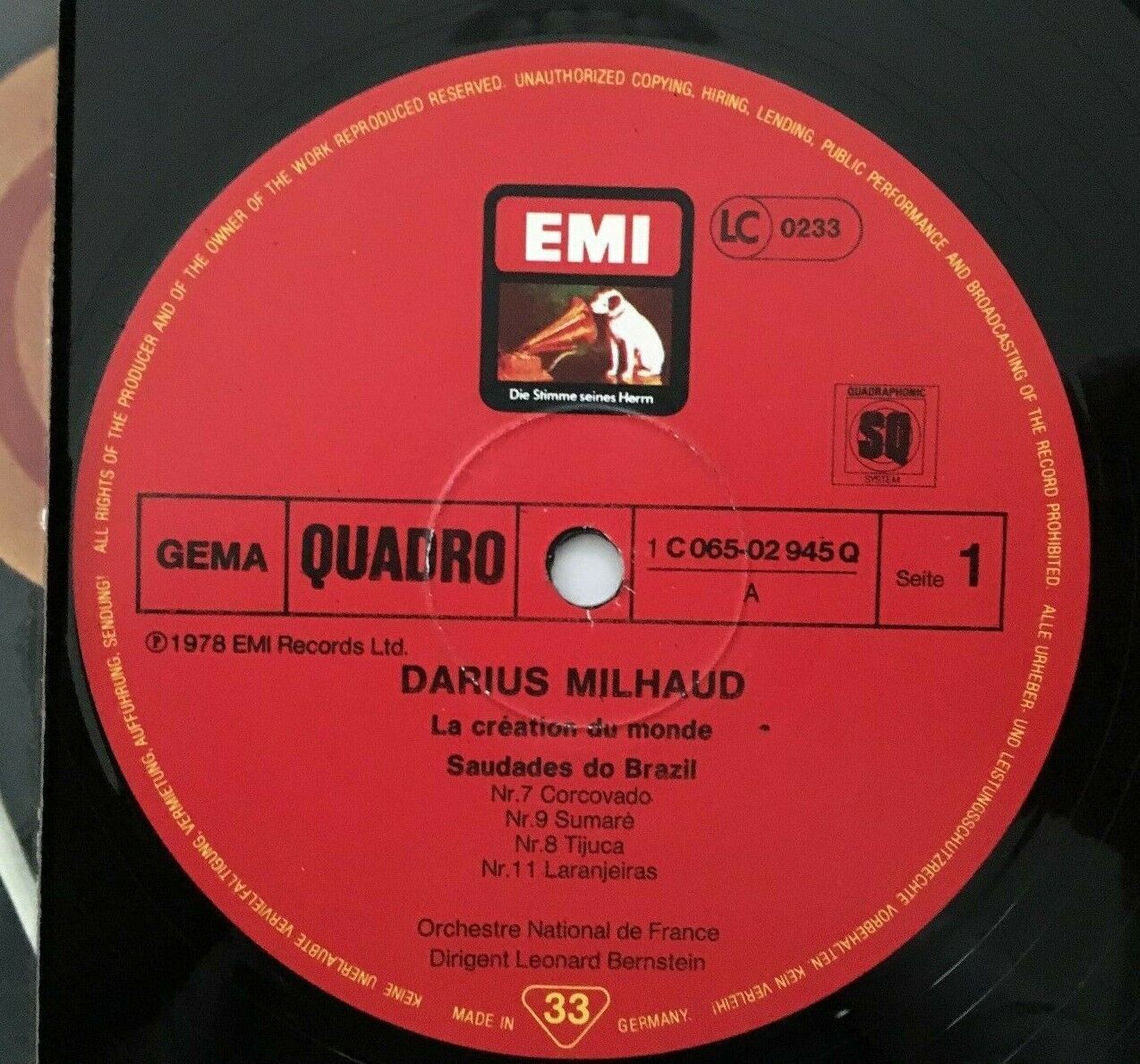 J013 Milhaud La Creation Du Monde Bernstein EMI 1C 065-02 945 Q Quadro