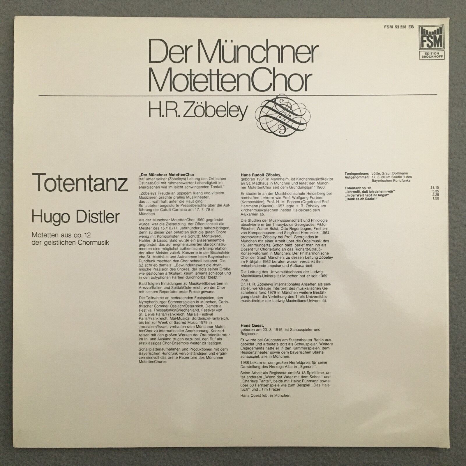 V467 Distler Totentanz Motets Zöbeley Motettenchor Munich FSM 53 228 EB Stereo