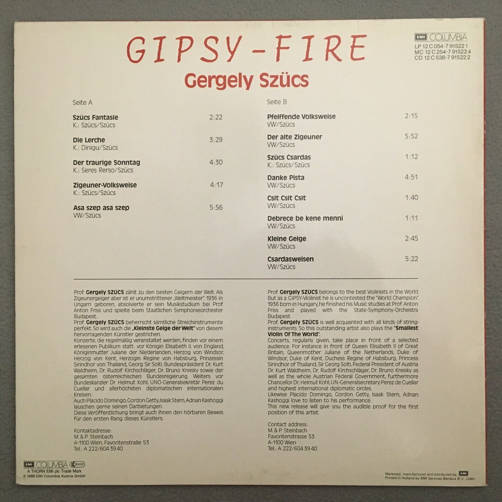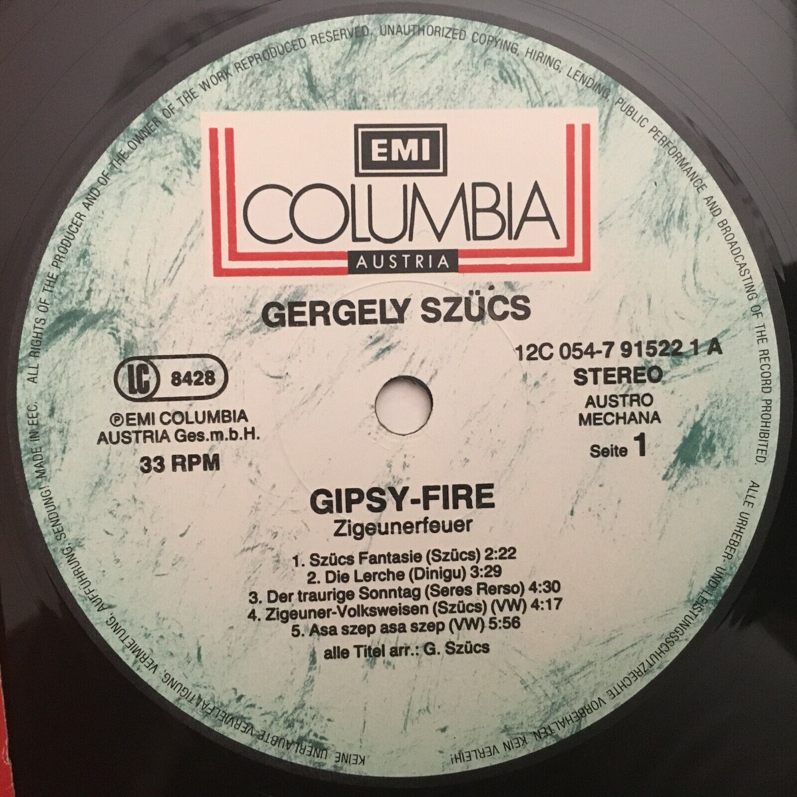 V512 Gipsy Fire Gergely Szücs EMI Columbia 12C 054-7 91522 1 Stereo SIGNED