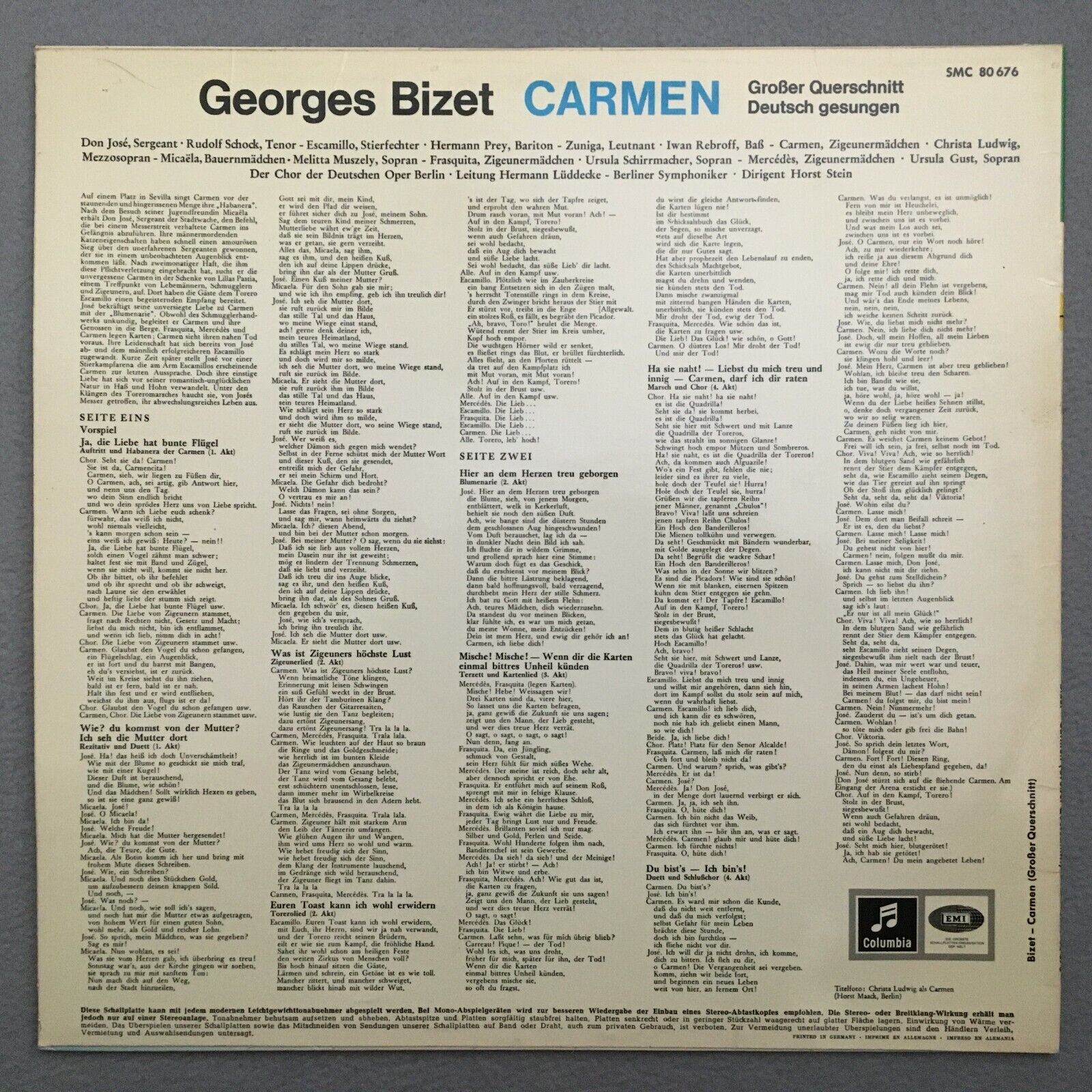 V525 Bizet Carmen Ludwig Prey Schock Stein BPO Columbia w/g SMC 80 676 Stereo